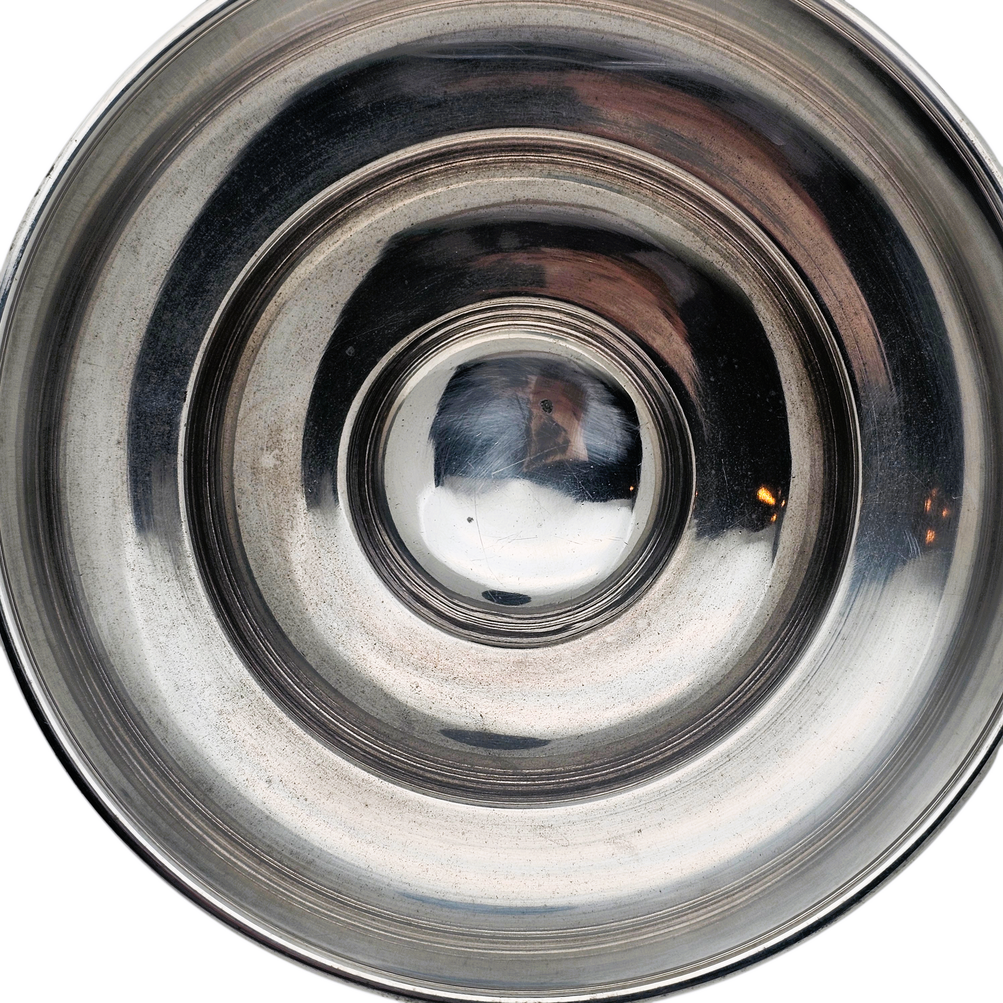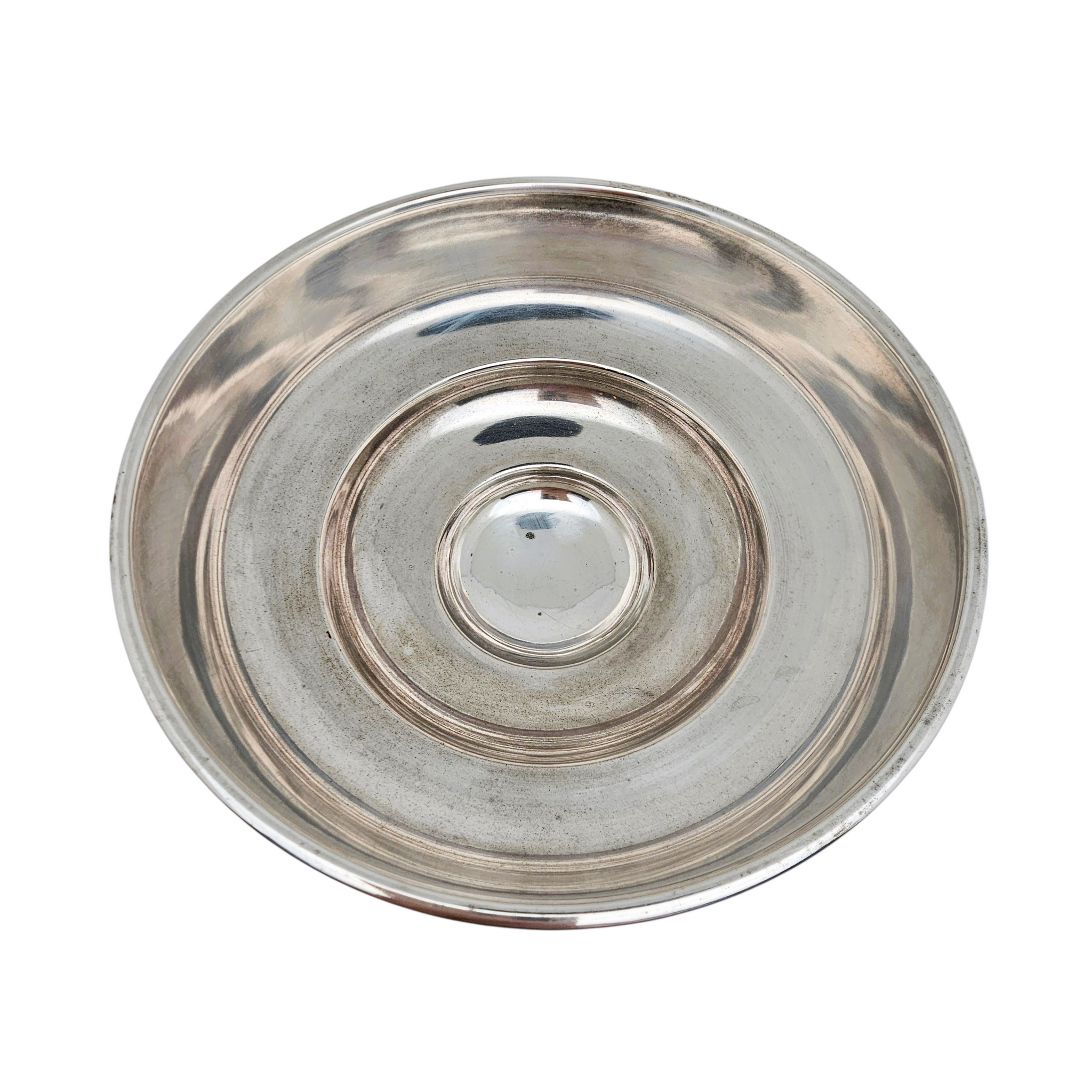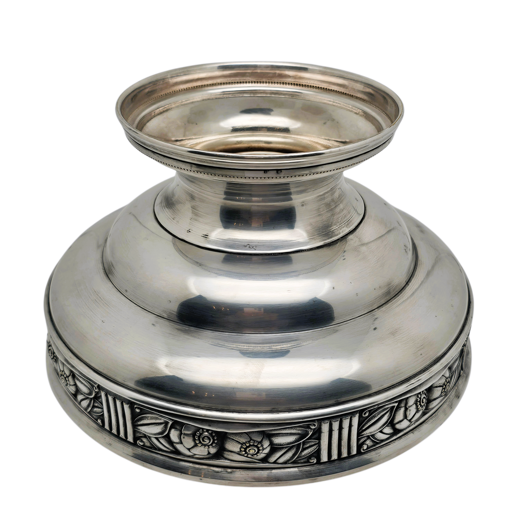 Élégante coupe à fruits sur piédouche en métal argenté, caractéristique du style Art déco des années 1920–1930.