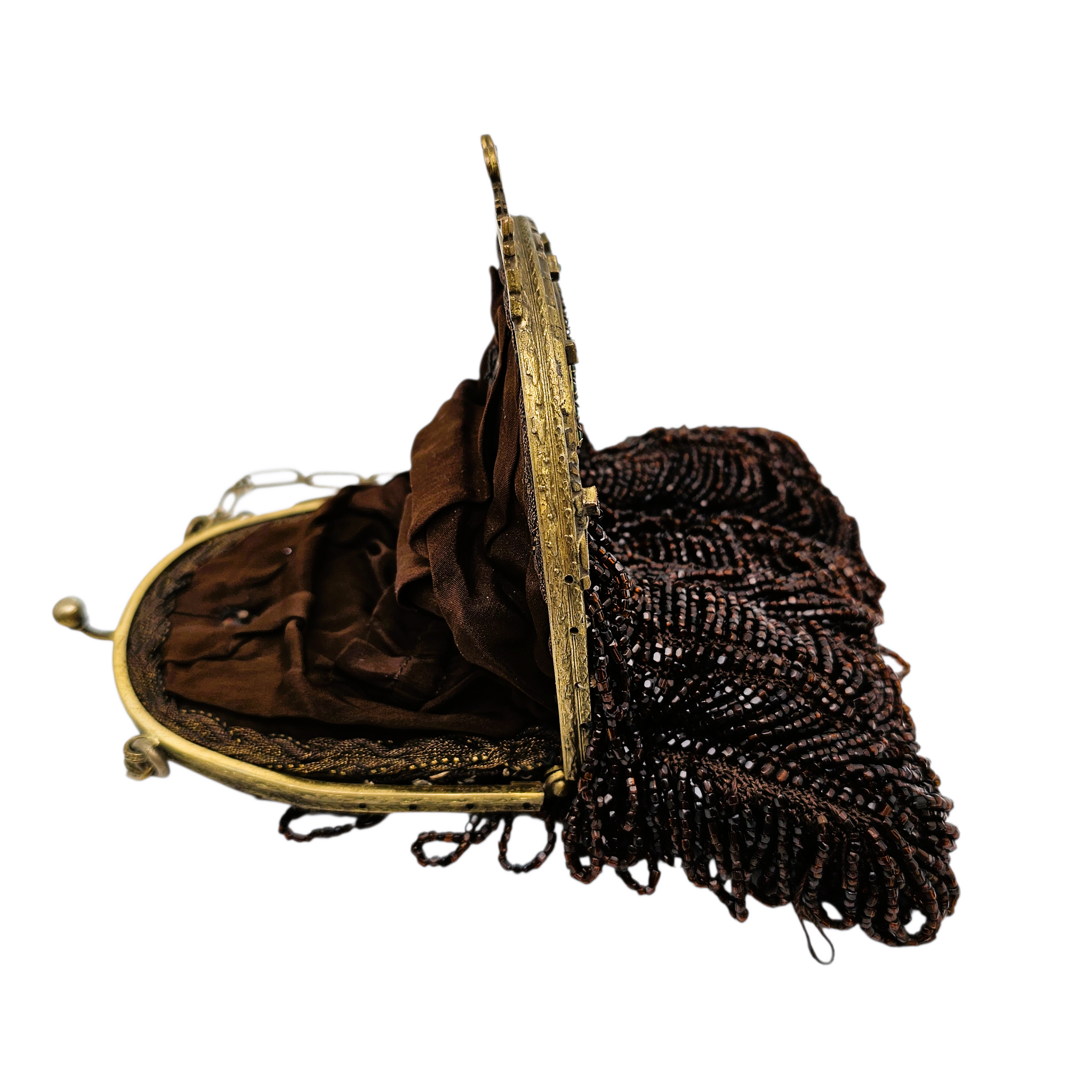 Élégante minaudière ancienne entièrement perlées , ornée d'un décor ondulant et rythmé, typique des sacs de soirée du début du XXᵉ siècle , dans le goût de la Belle Époque .