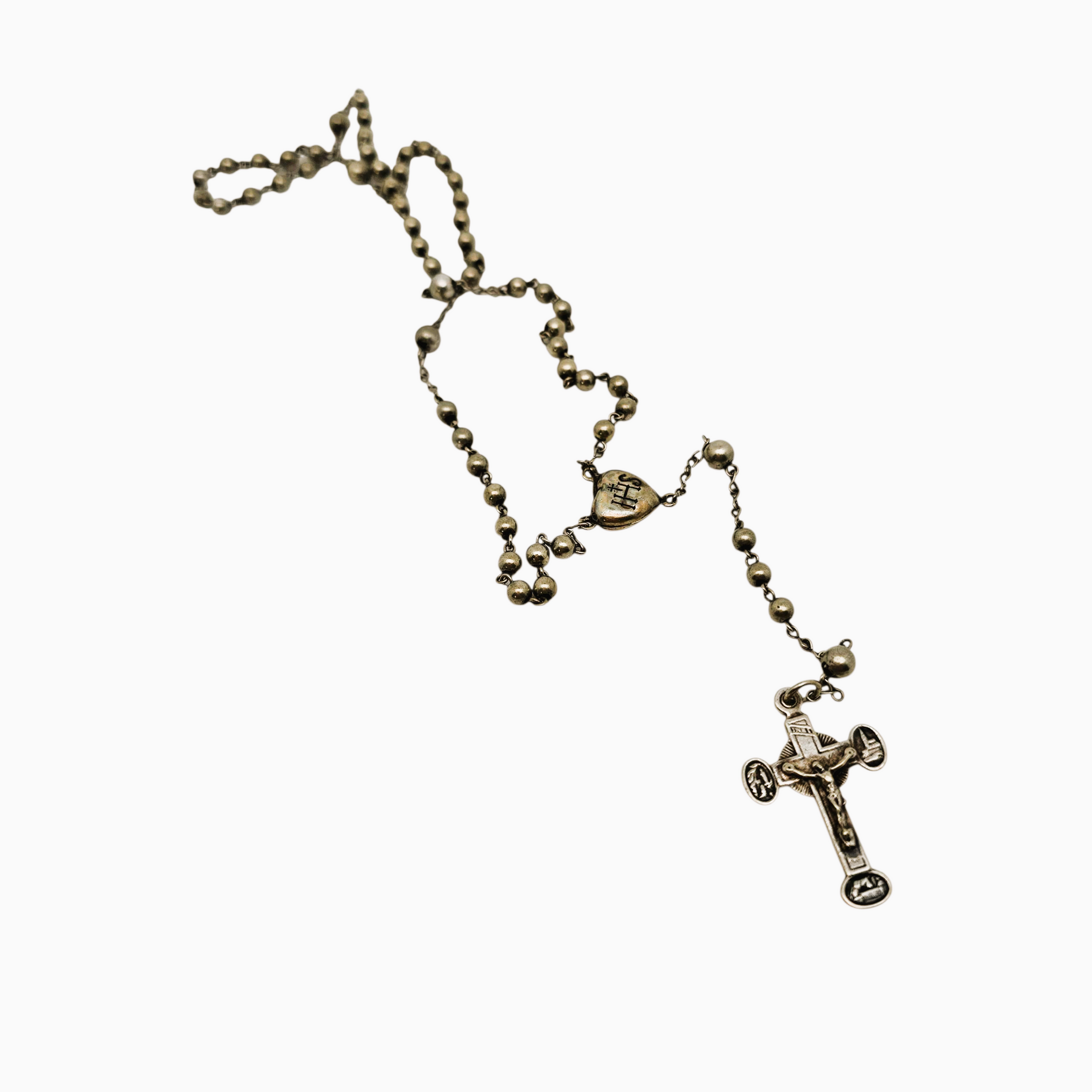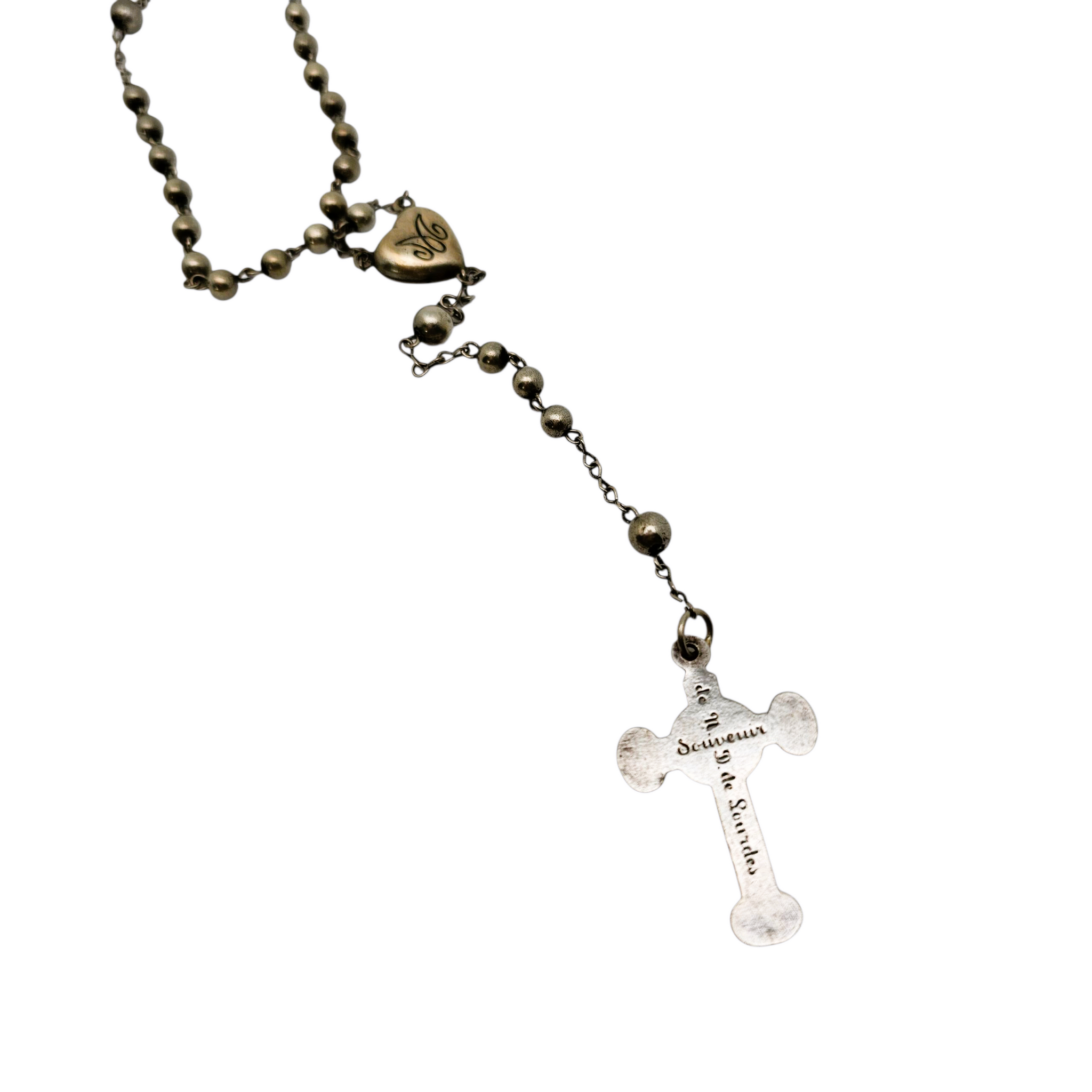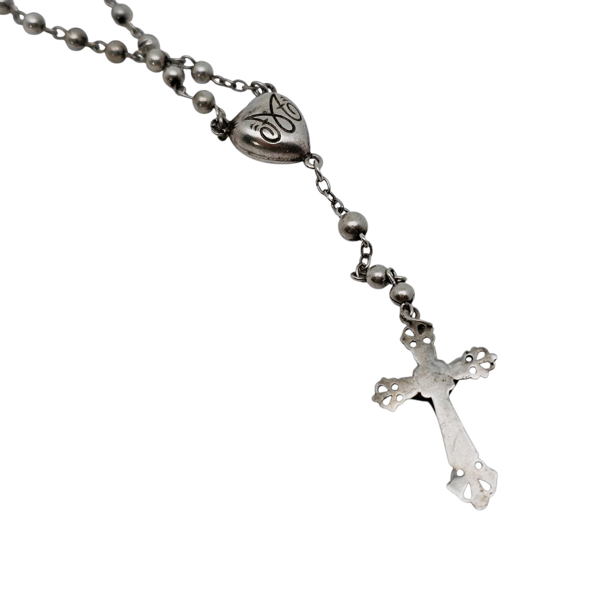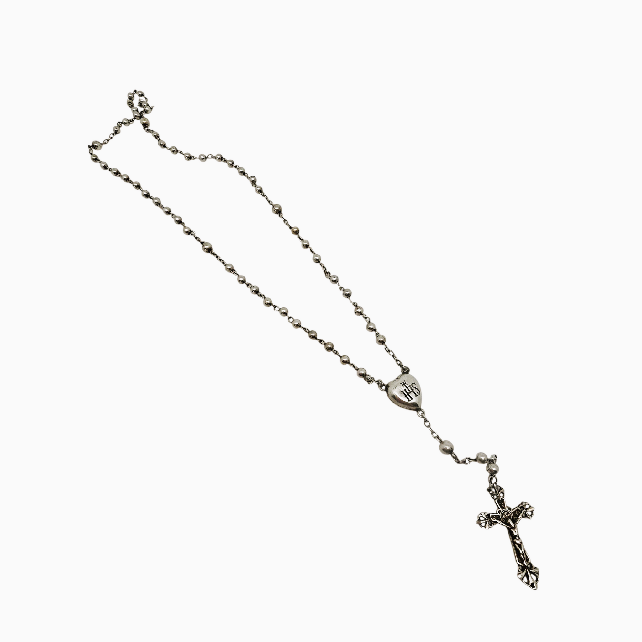 Le premier, en argent massif testé, présente un délicat cœur “IHS” et un crucifix ajouré à décor gothique.