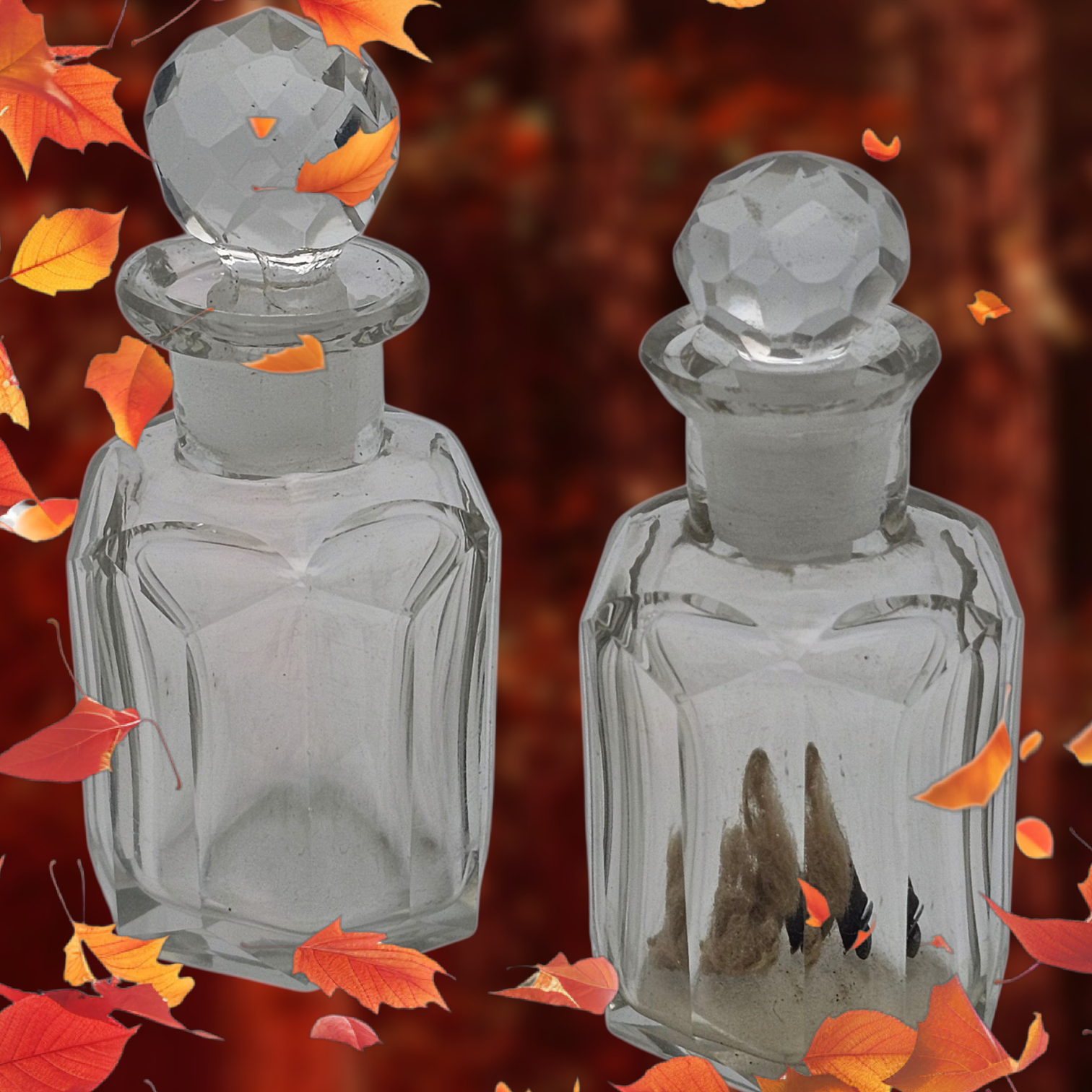 Un duo plein d’élégance et de charme ancien : deux flacons à parfum en verre taillé, témoins raffinés des nécessaires de toilette de la Belle Époque.