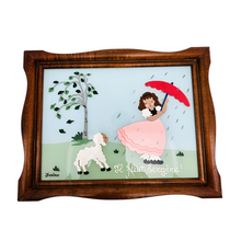 • Load image into Gallery viewer, Tableau vintage peint sur verre "Il pleut, bergère !" signé Yvalan, années 1955-1965 Le Charme des Violettes - Brocante en ligne