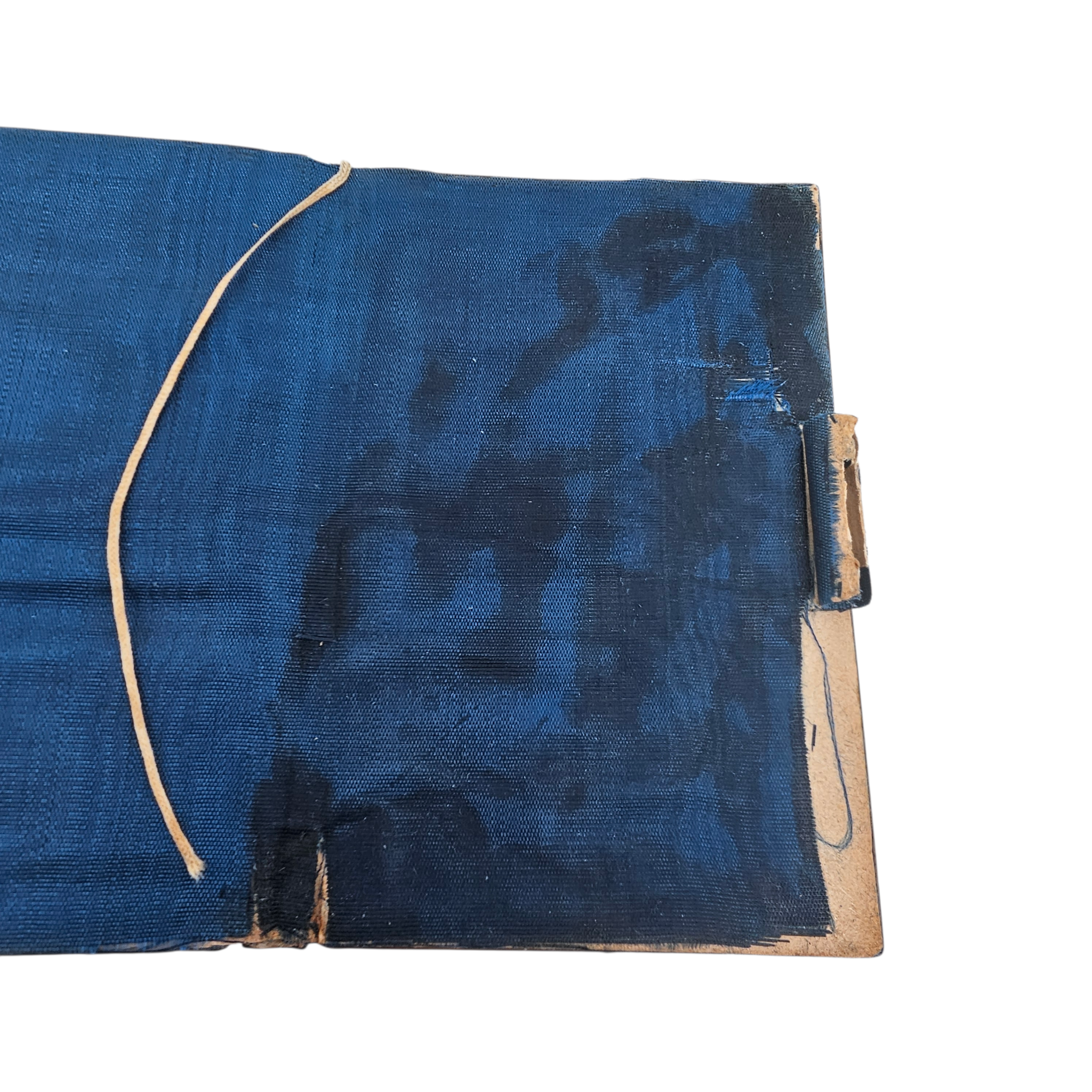 À signaler : petits manques de tissu, notamment sur les attaches du crayon, et traces anciennes de colle sur la soie intérieure, cohérents avec l’âge. L’extérieur est très bien conservé.