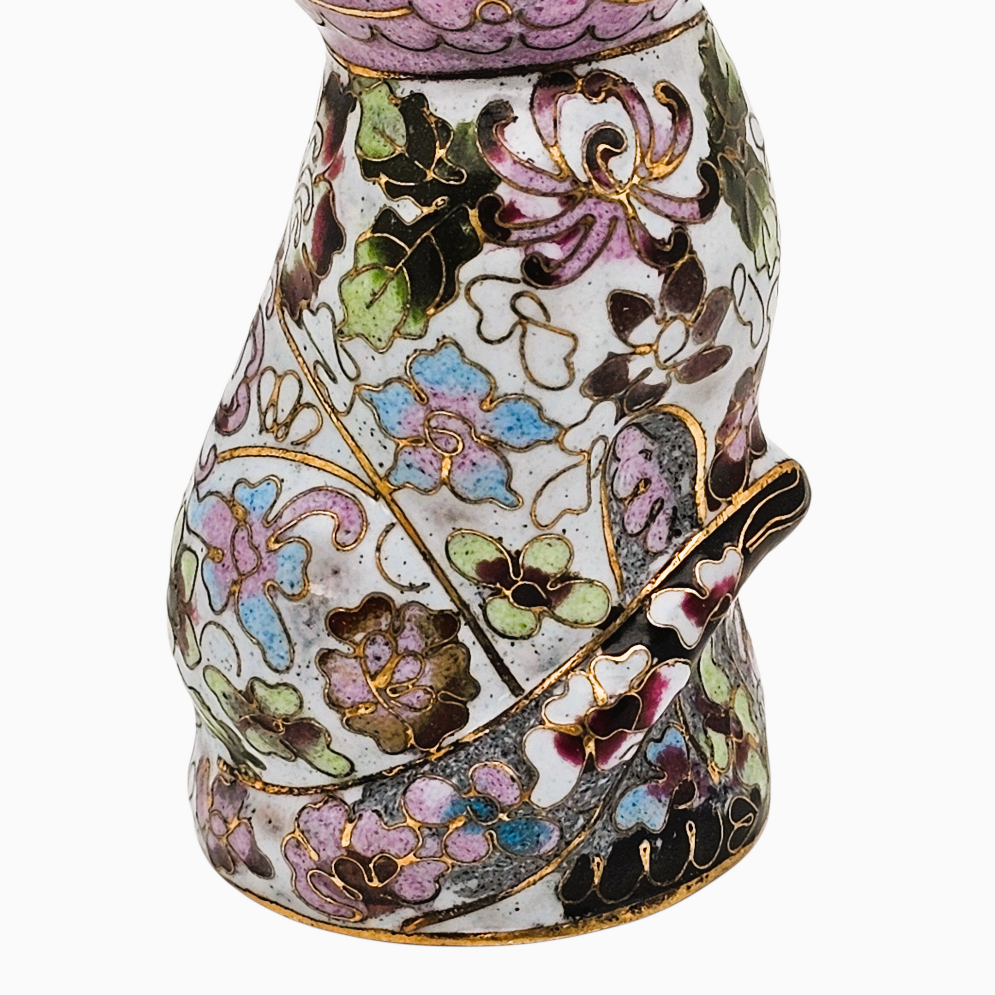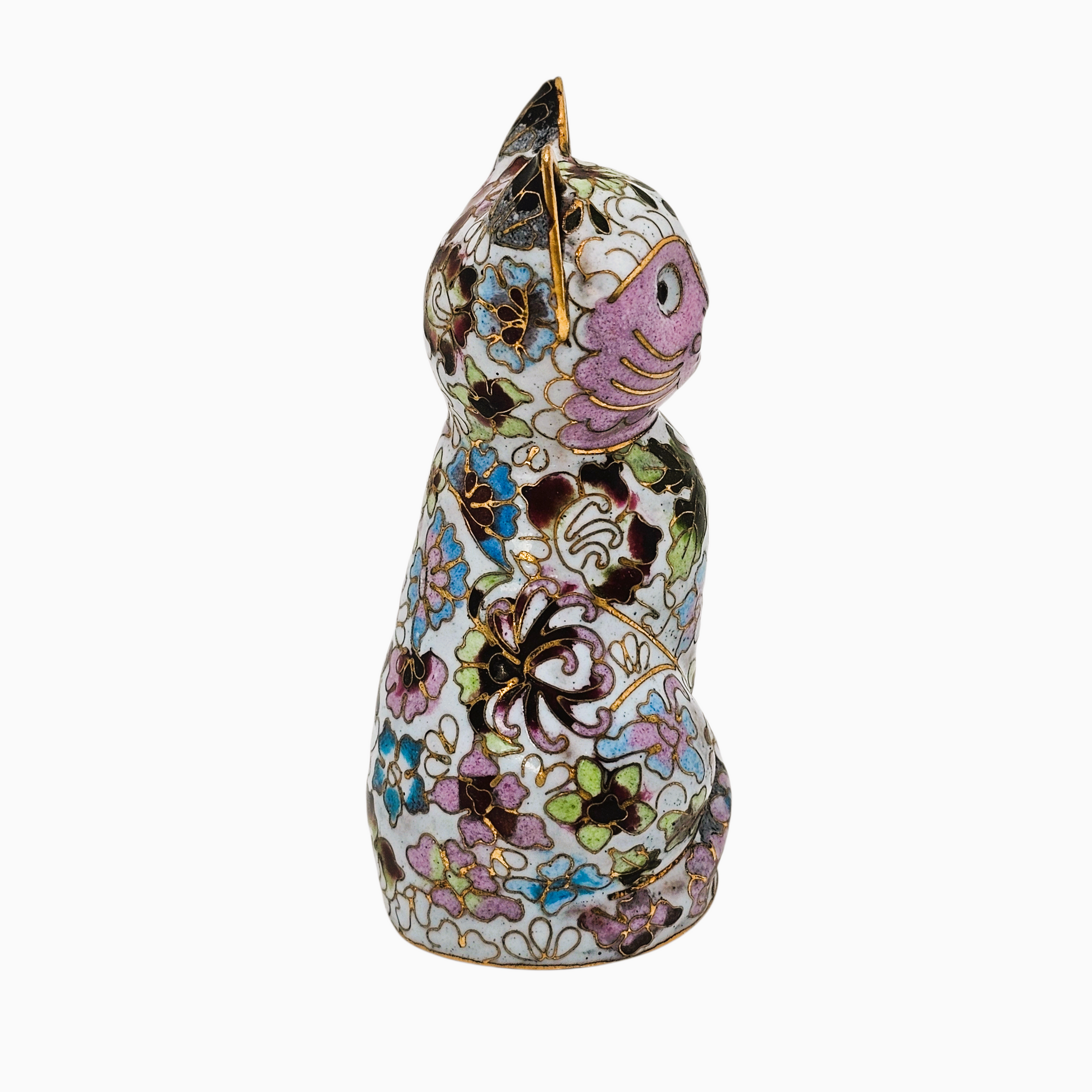 Lumineux et délicat, ce charmant petit chat en émail cloisonné séduit par son décor floral aux couleurs pastel et son expression douce et naïve.