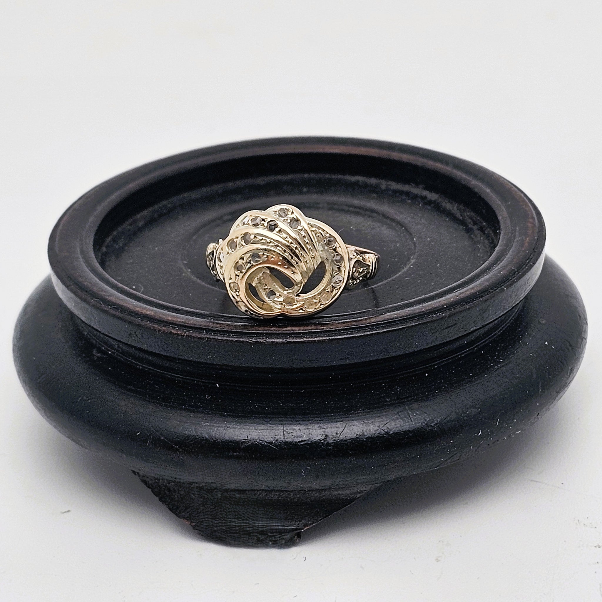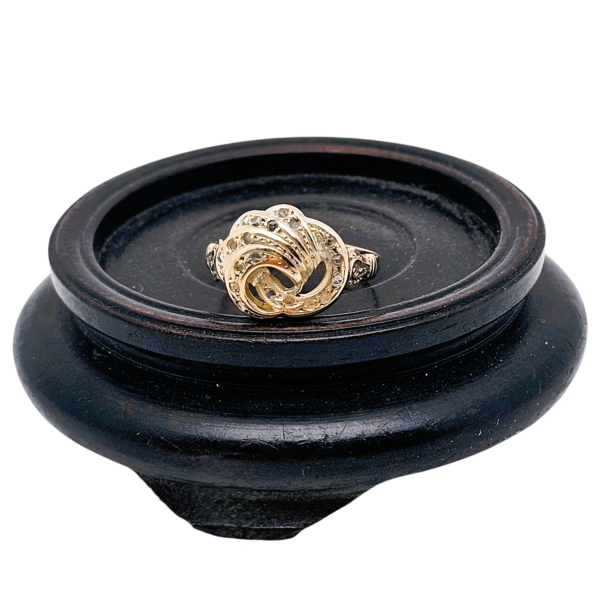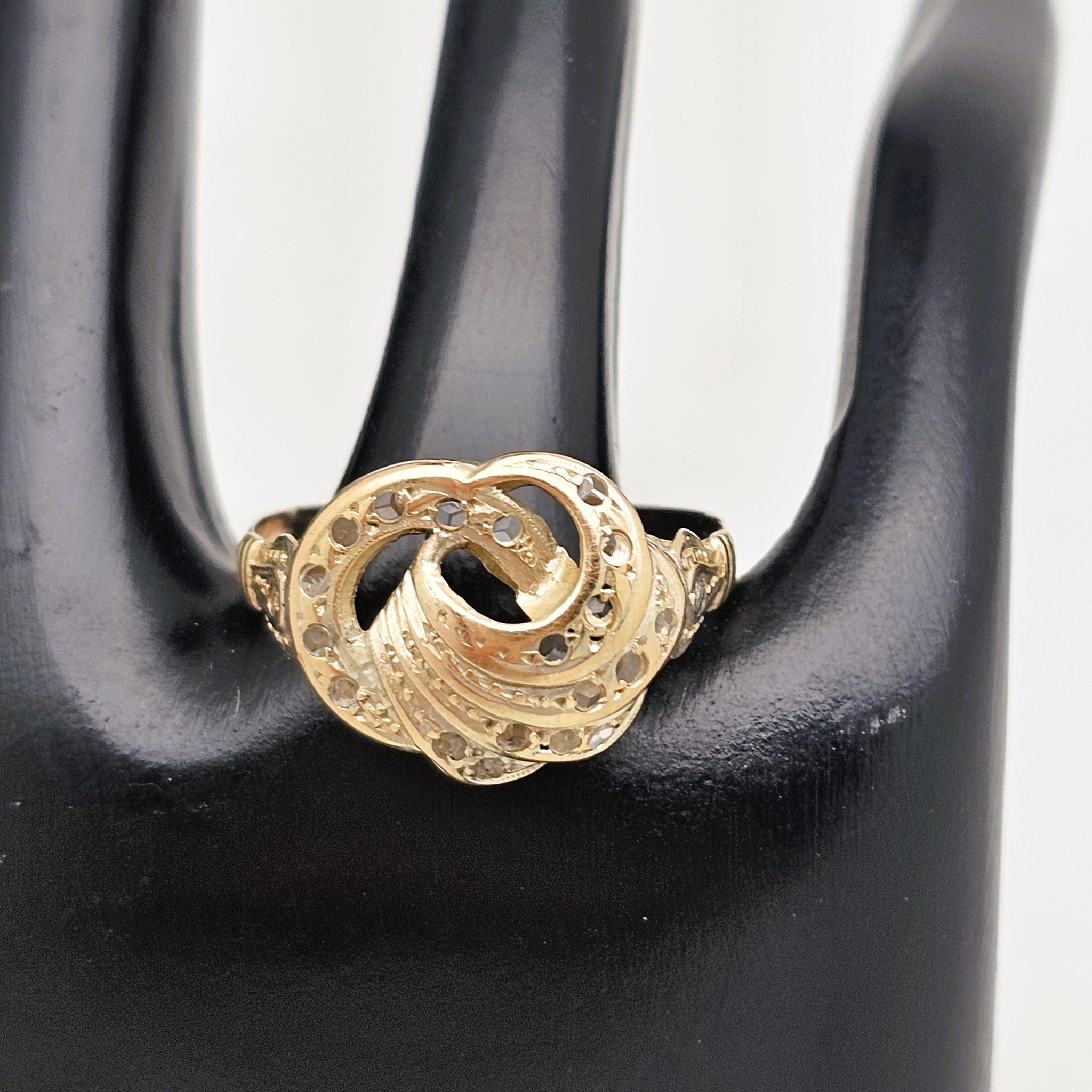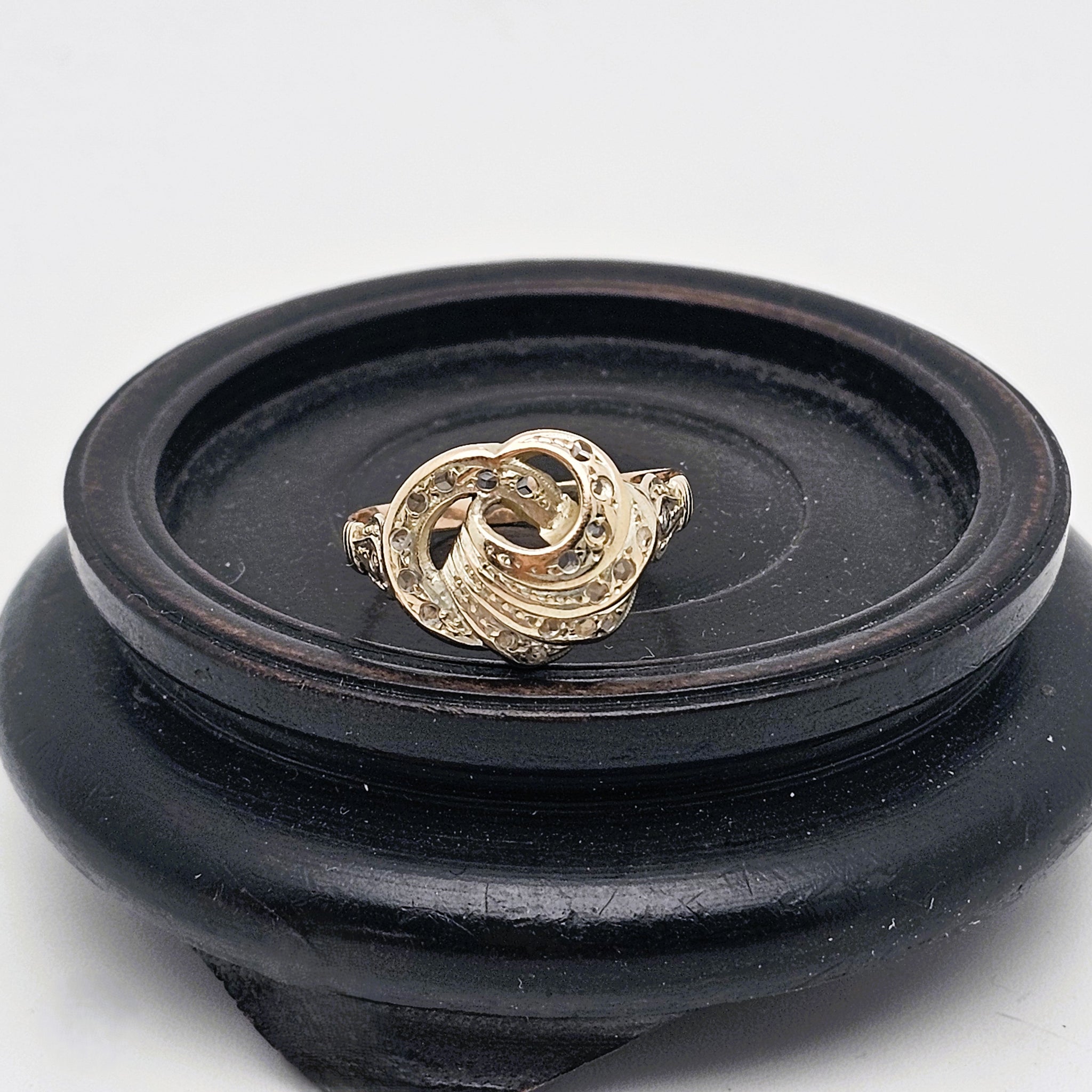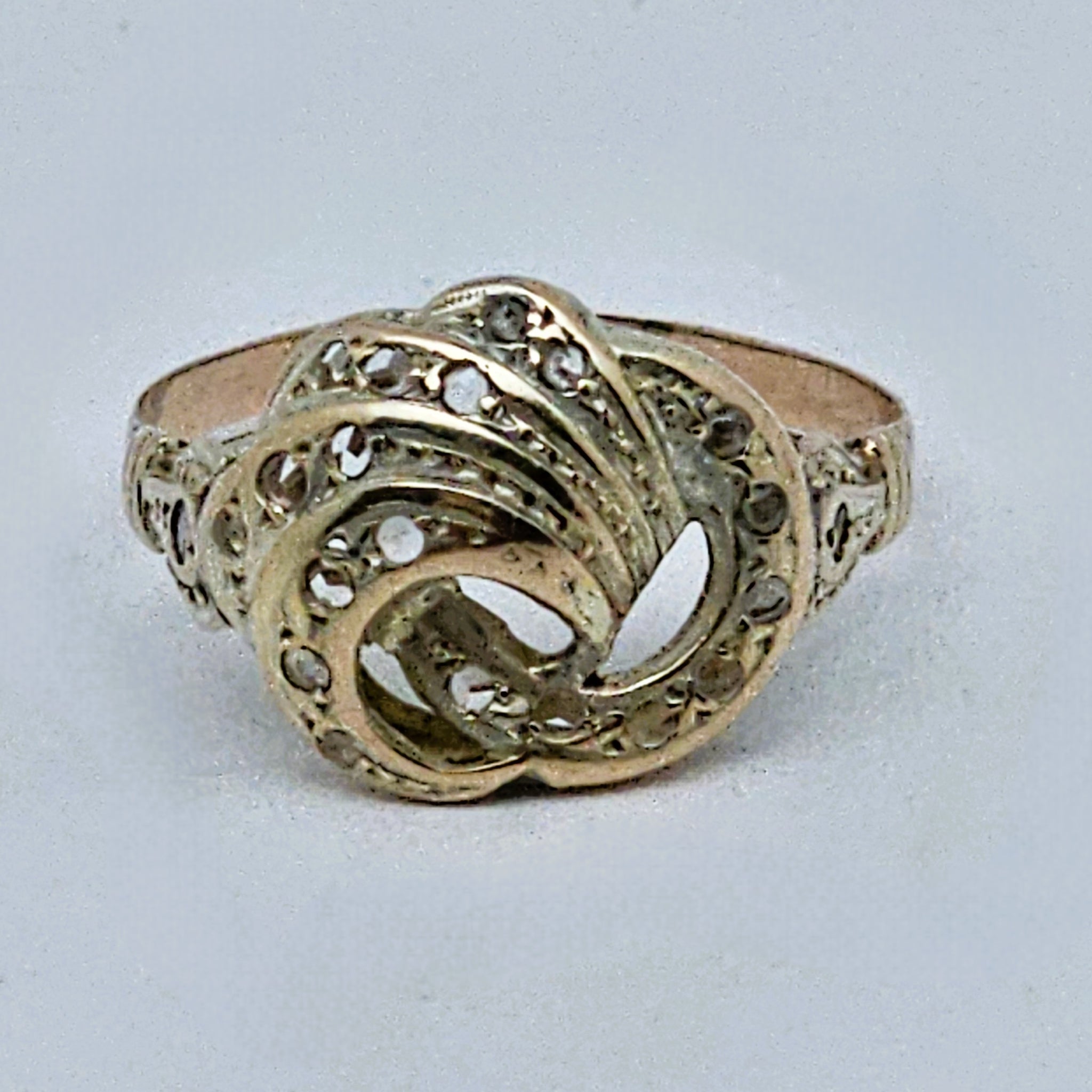 Élégante bague ancienne en or 14 carats (or étranger, sans poinçon français), probablement de fabrication espagnole, sertie de 21 diamants taille rose.
