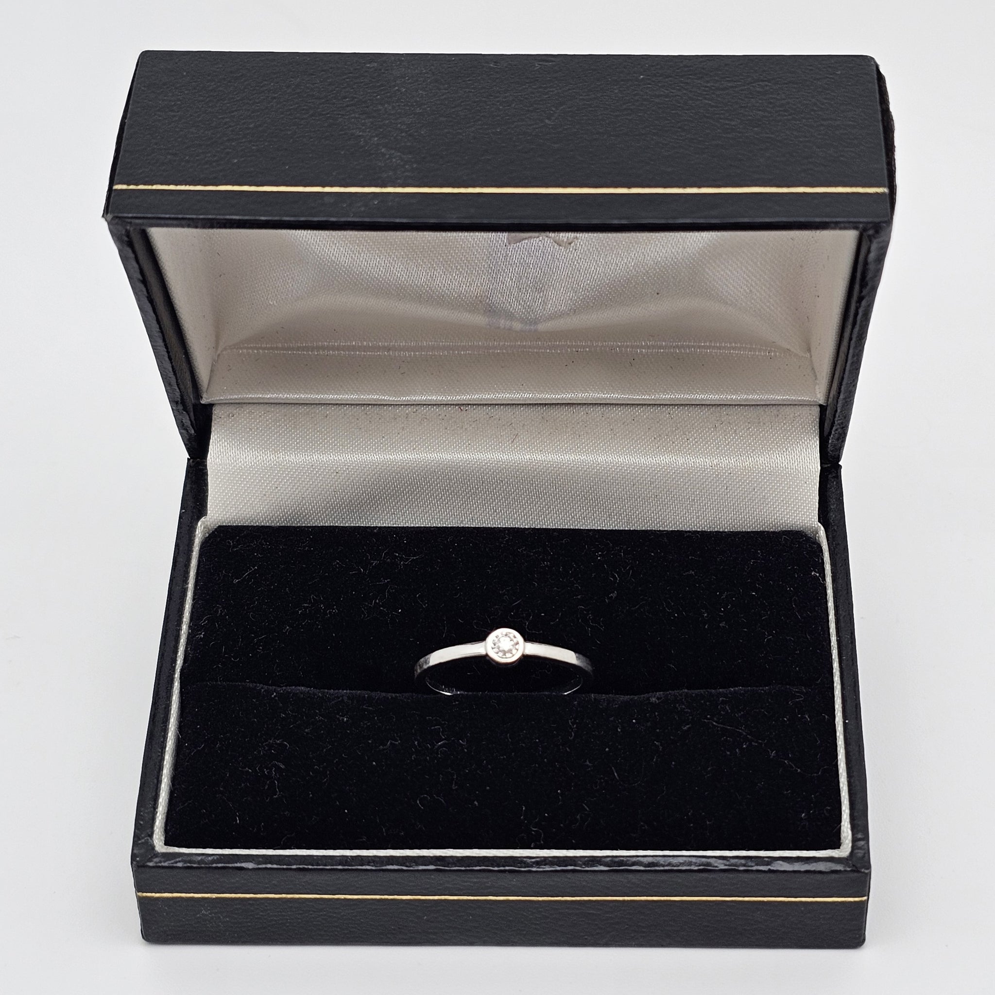 Élégante et délicate, cette bague solitaire en or blanc 18 carats séduit par sa finesse et son éclat discret.