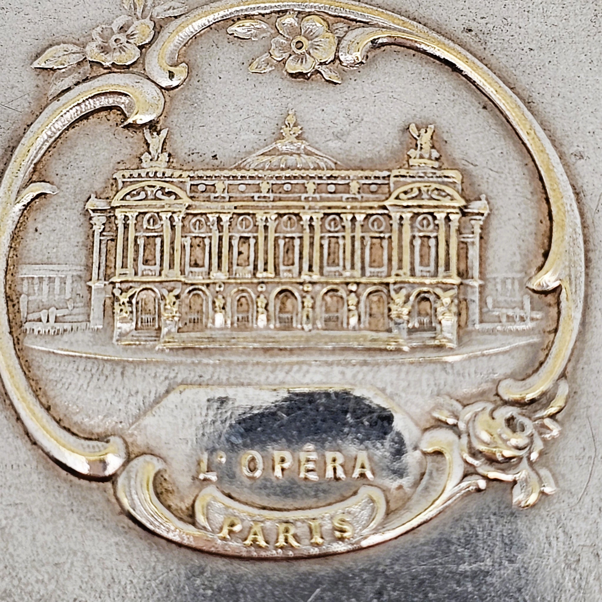 Le revers est orné d'une représentation en relief de l' Opéra de Paris (Palais Garnier) , emblème du Paris élégant et festif, faisant de ce carnet un souvenir raffiné et évocateur.