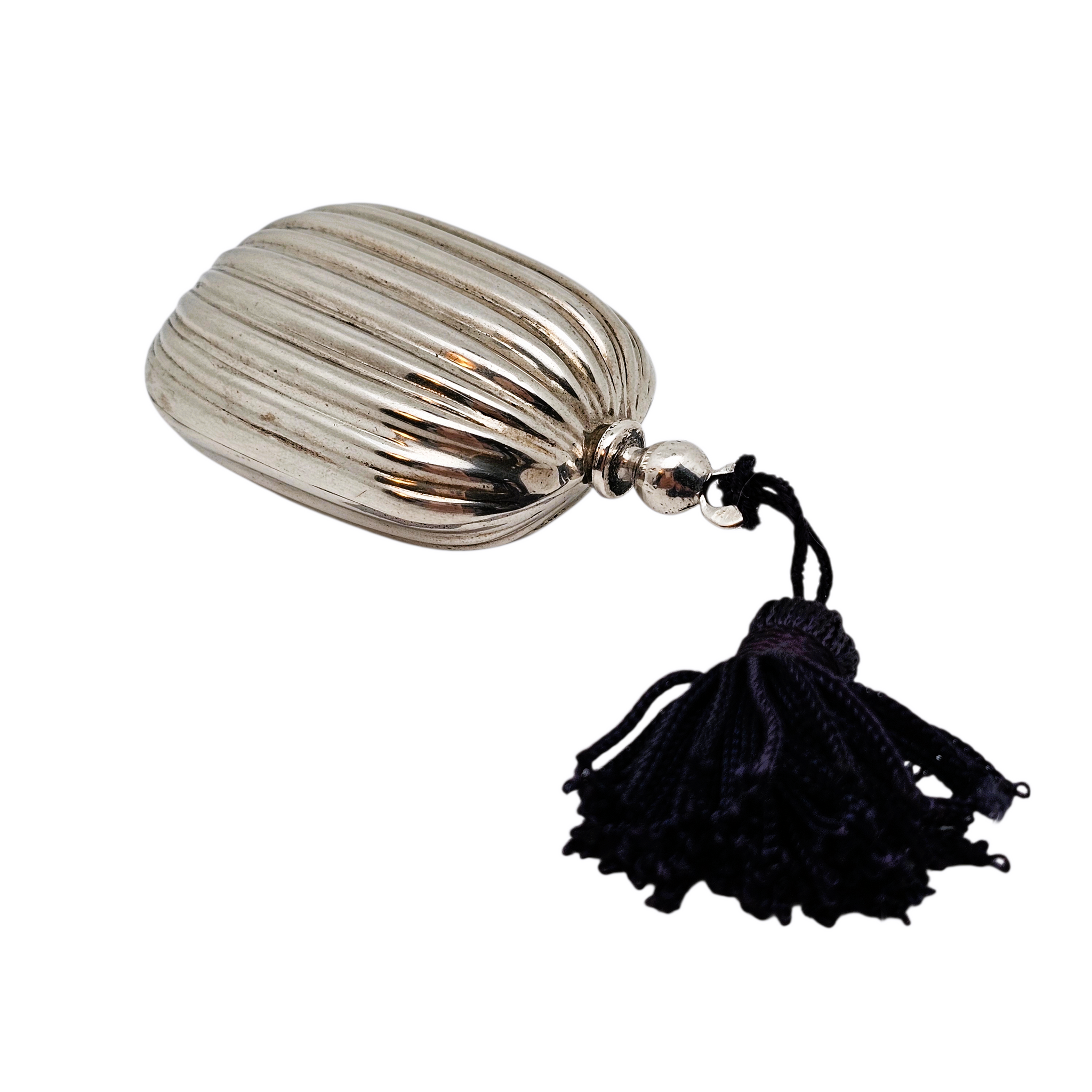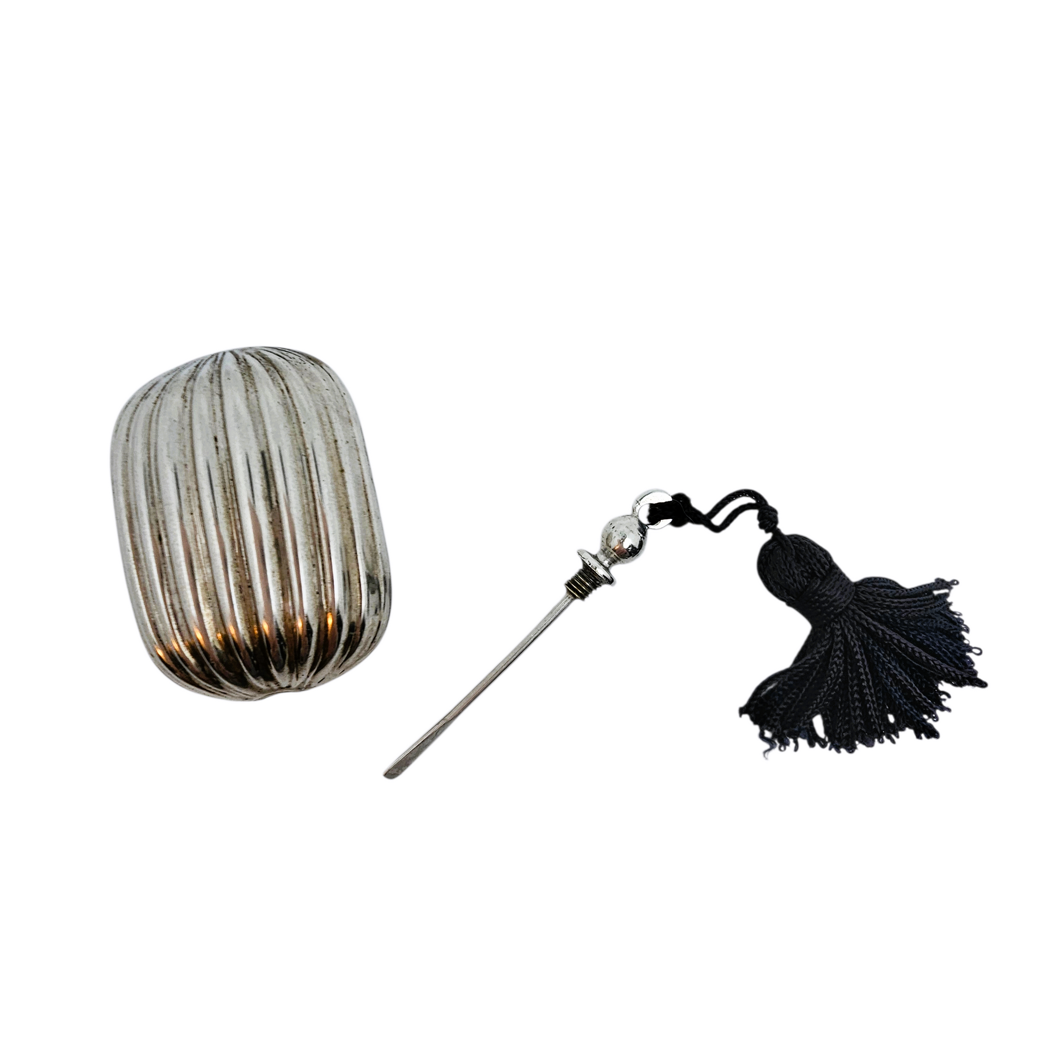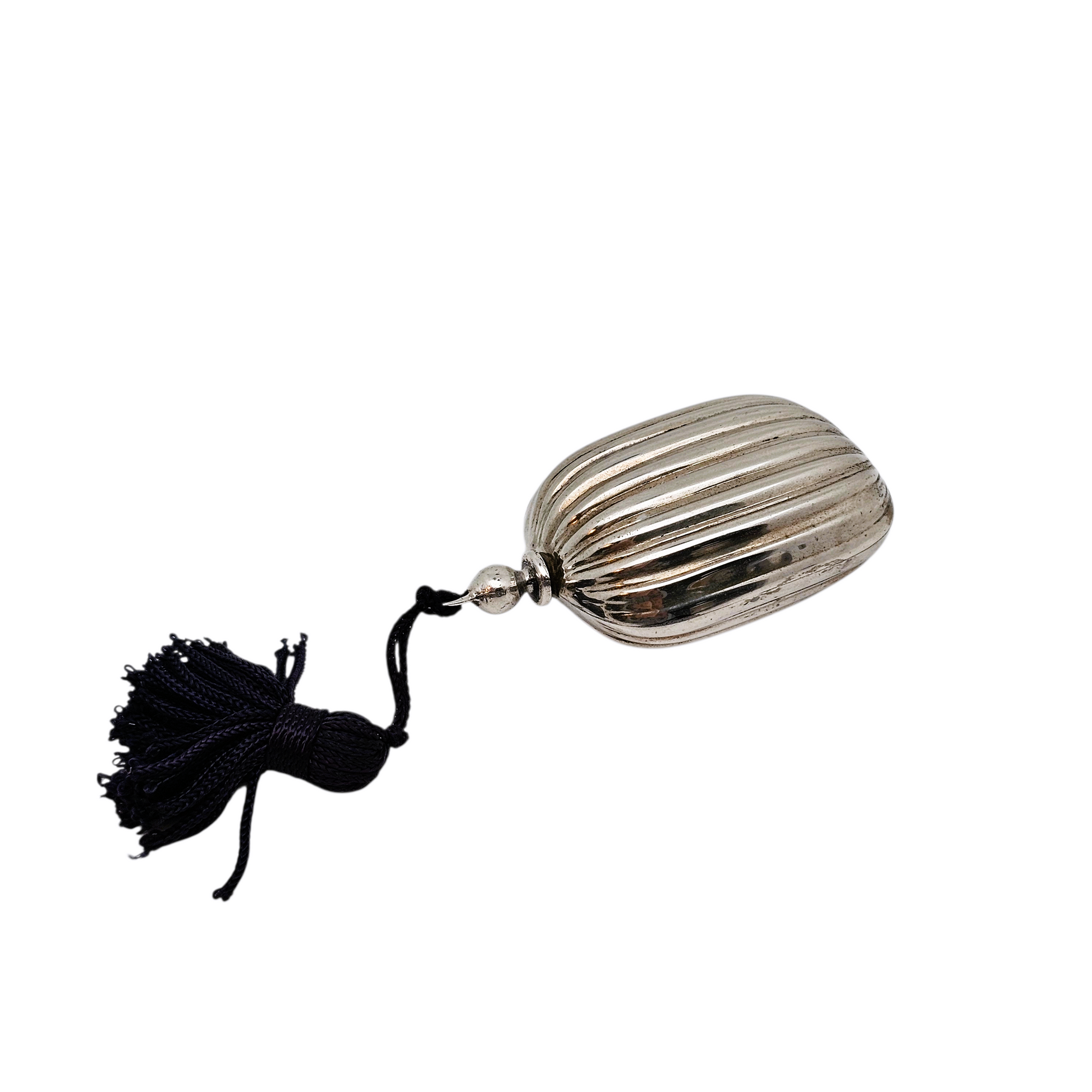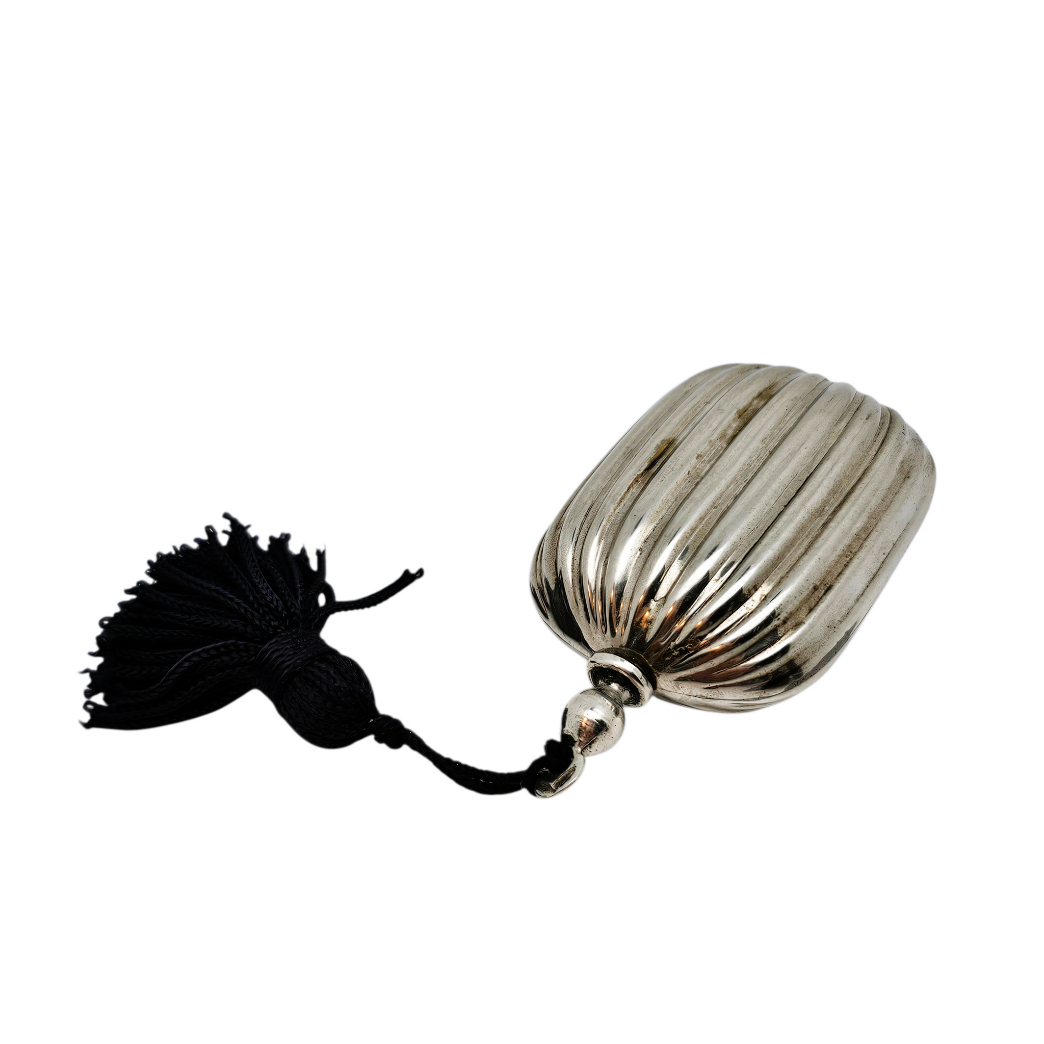 Élégant flacon à sels anciens, également appelé vinaigrette, réalisé en argent 800/1000è et décoré d'un délicat décor cannelé aux lignes sobres et raffinées.