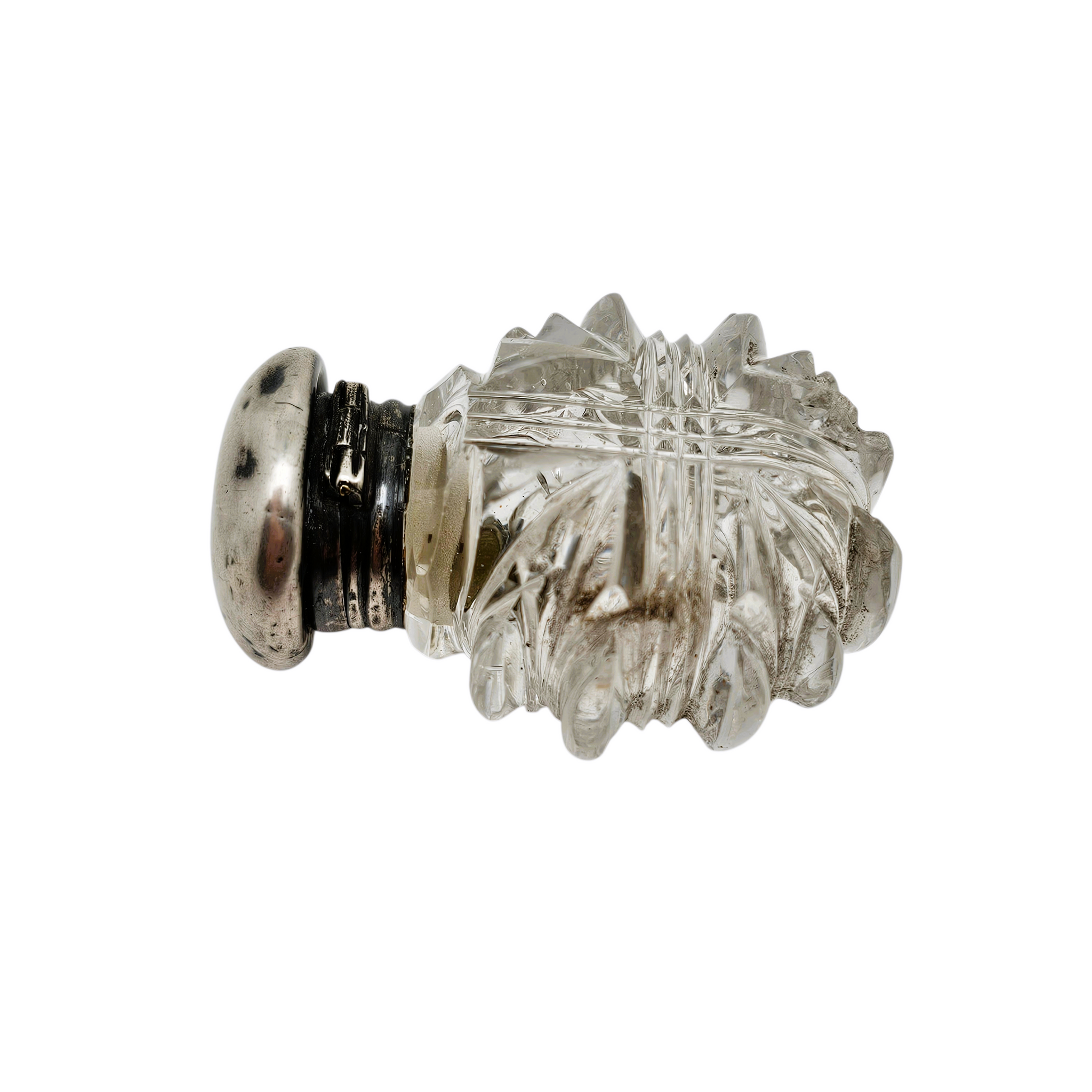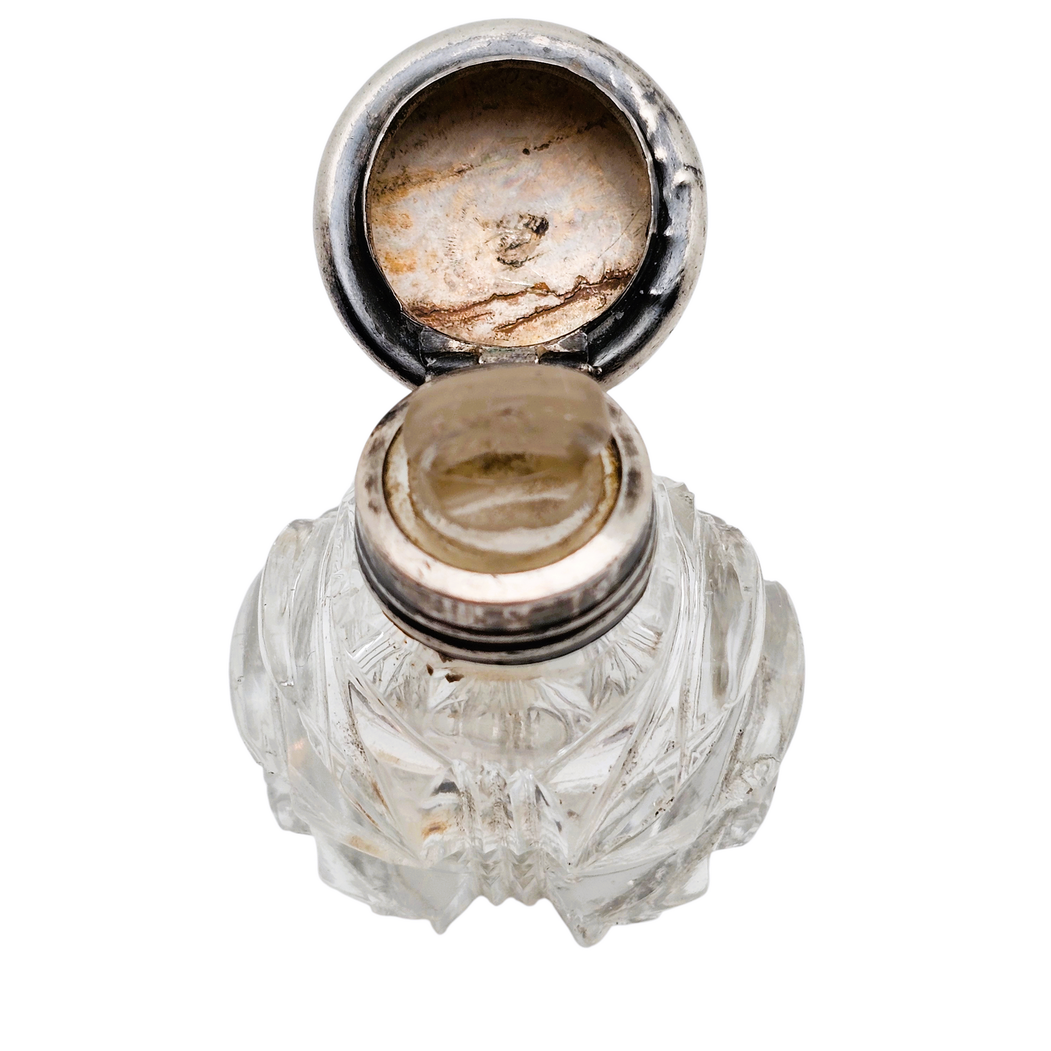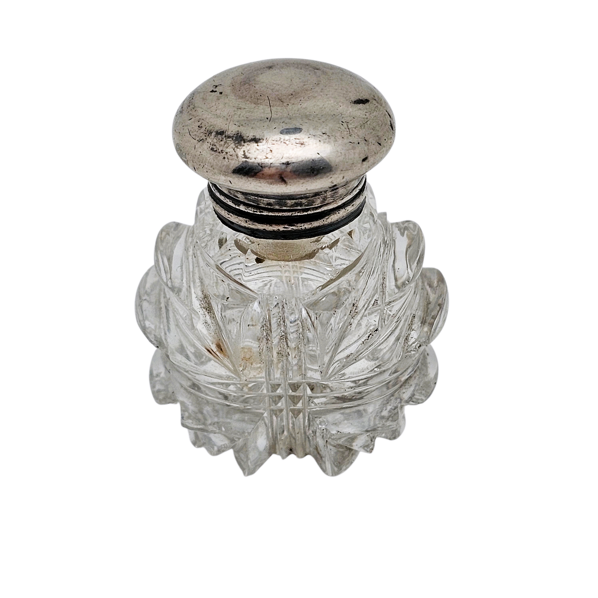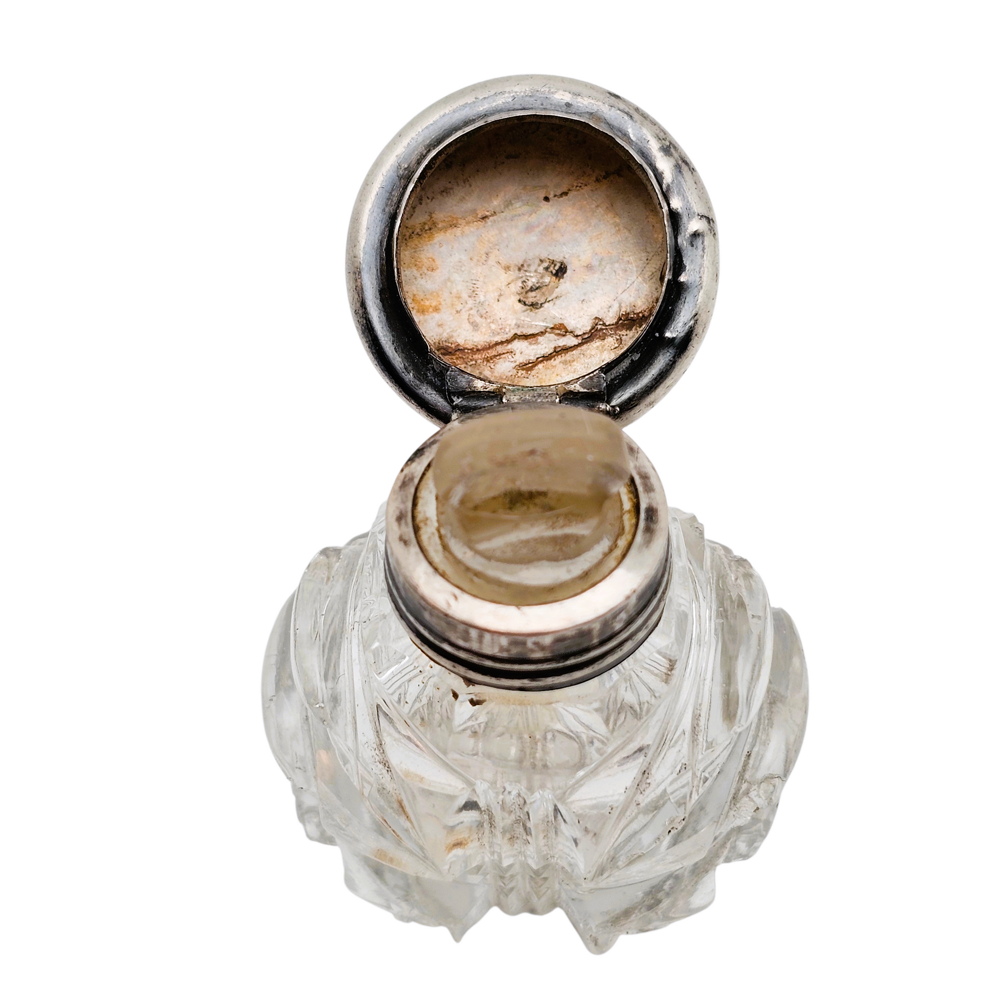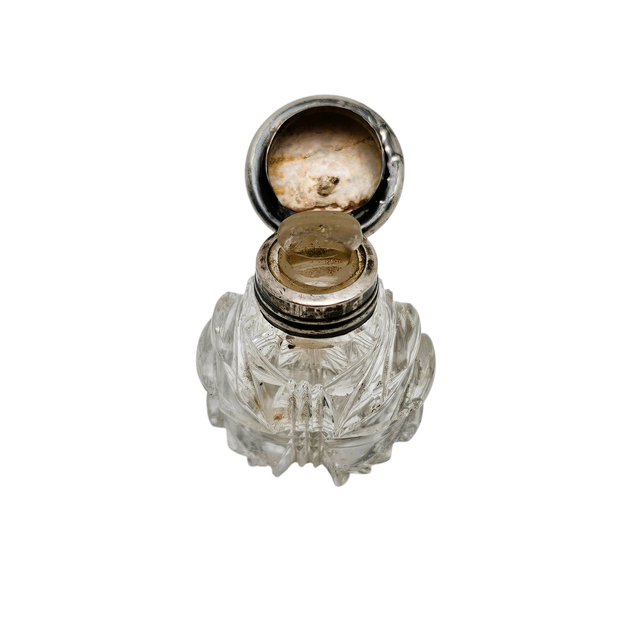 Petit flacon à parfum en cristal taillé et bouchon en métal argenté, fin XIXè - début XXè