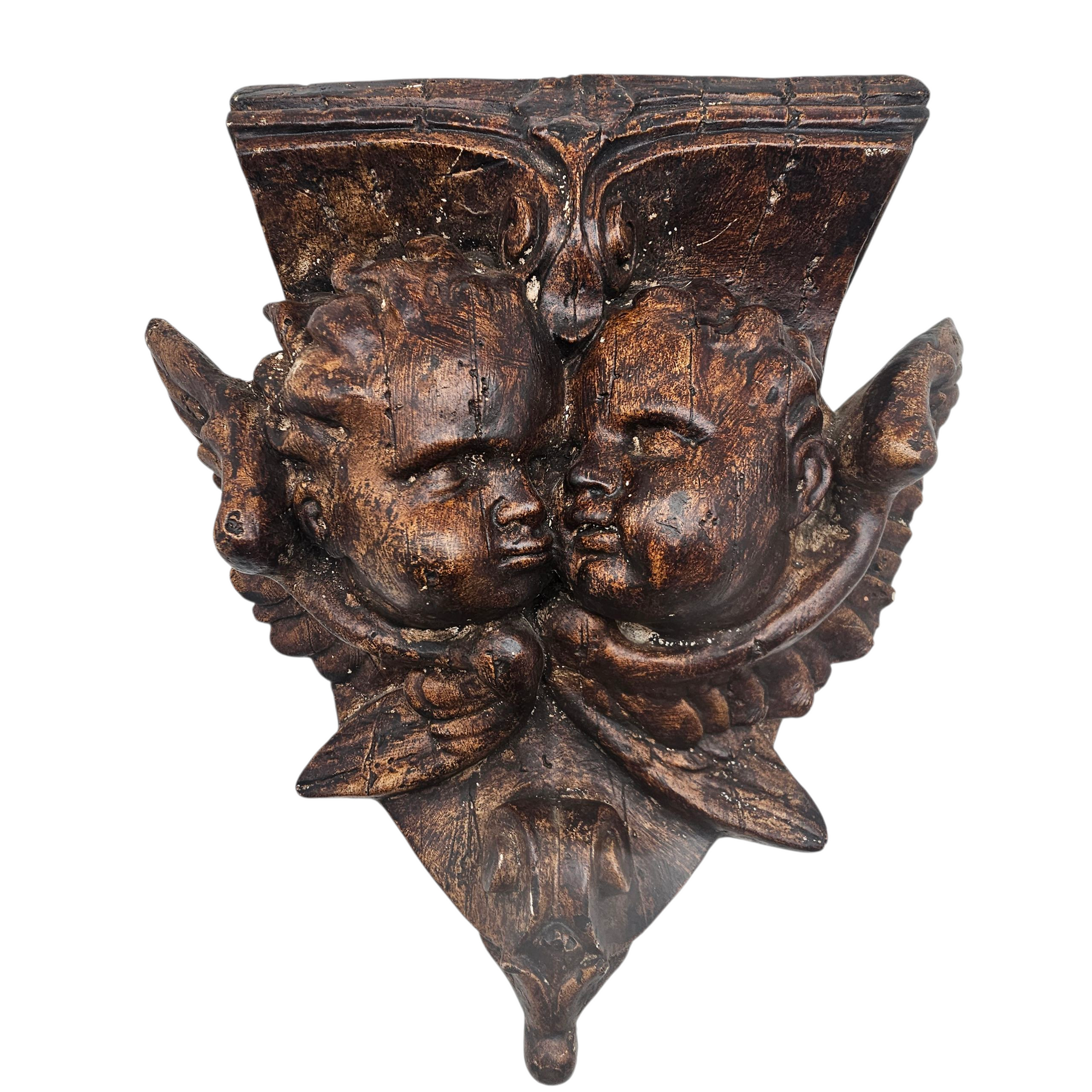 Console d'applique à motif de putti en plâtre patiné façon bois, fin XIXᵉ – début XXᵉ siècle Le Charme des Violettes - Brocante en ligne