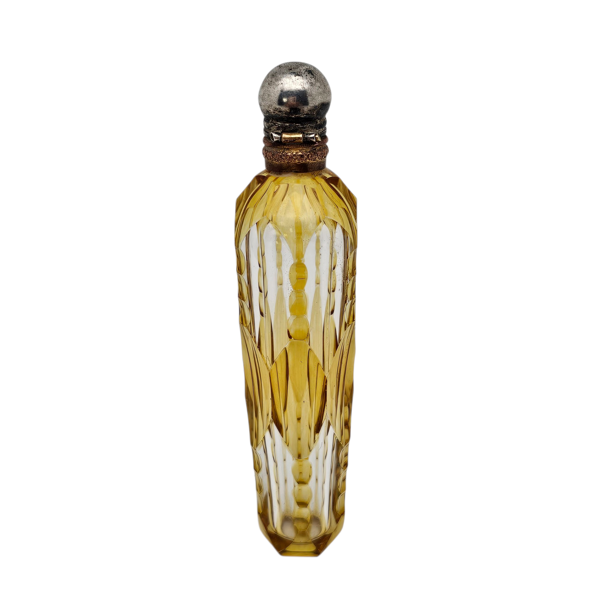 Flacon à parfum en cristal jaune ambré et monture en métal argenté, vers 1880-1900