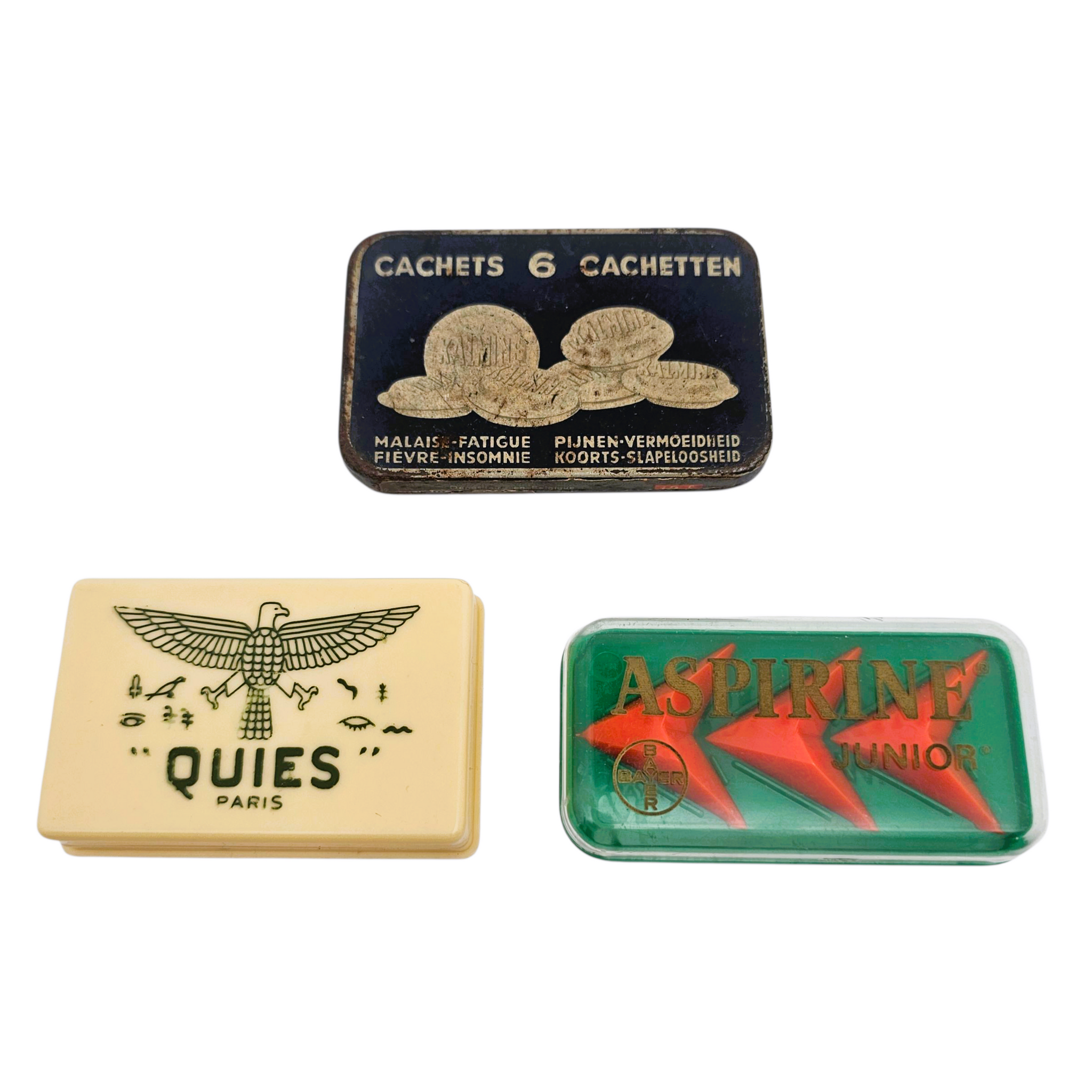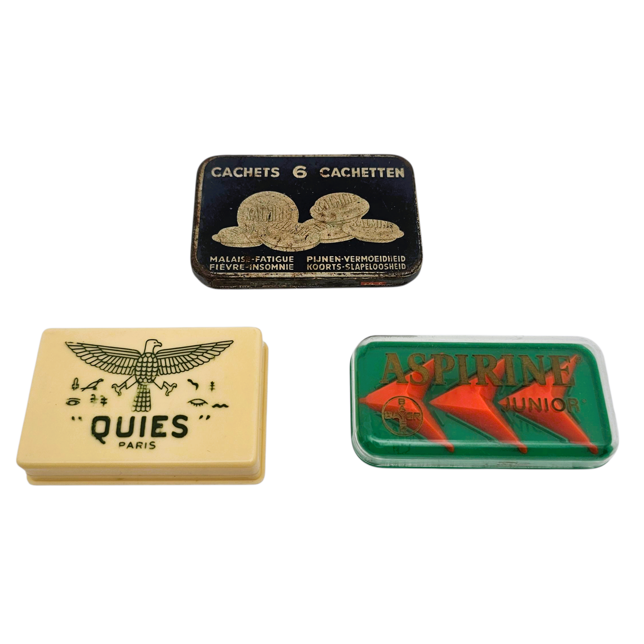 📏 Dimensions : Boîte Quies : 7,5 cm X 4,8 cm X 1,8 cm / Boîte Aspirine 8,5 cm X 4,5 cm / Boîte Métadier 8,7 cm X 5,7 cm, poids total 67 g