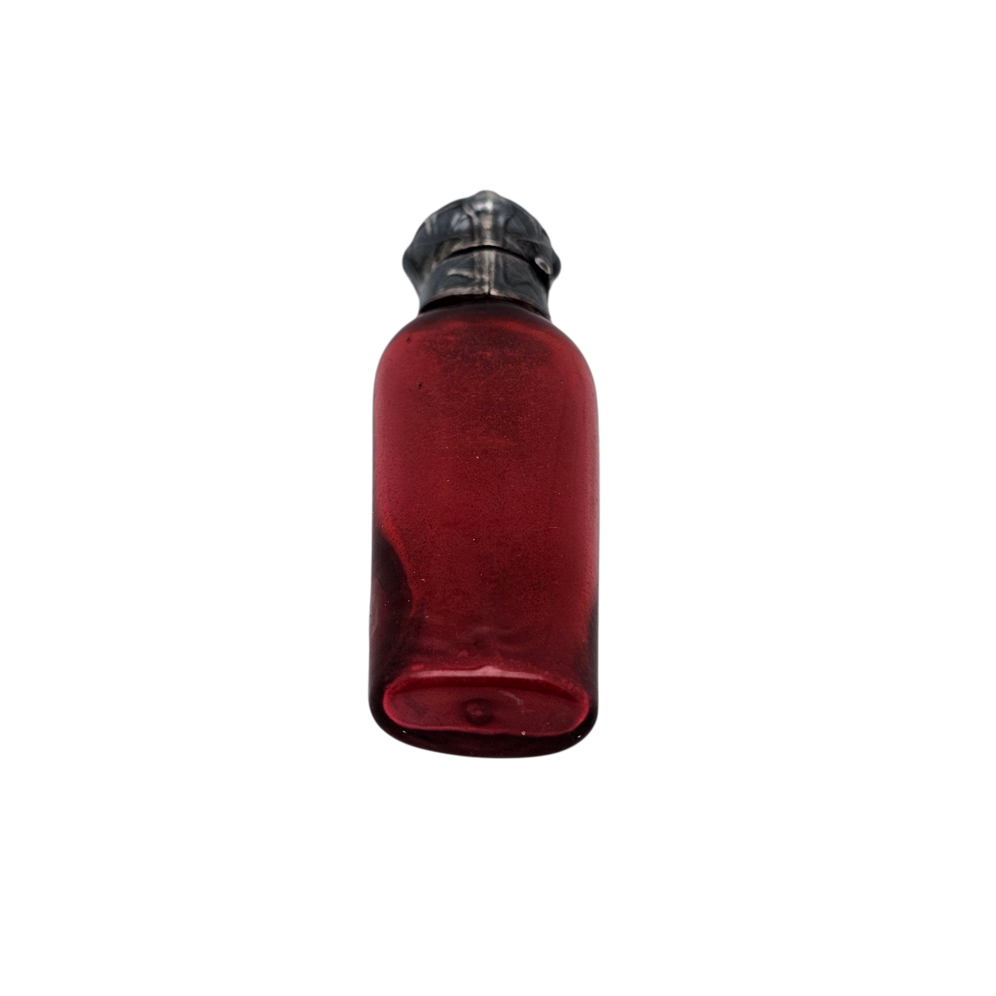 Ce petit flacon en verre rouge soufflé semble encore contenir le parfum du passé, celui que les élégantes emportaient dans leurs sacs ou leurs nécessaires de voyage.
