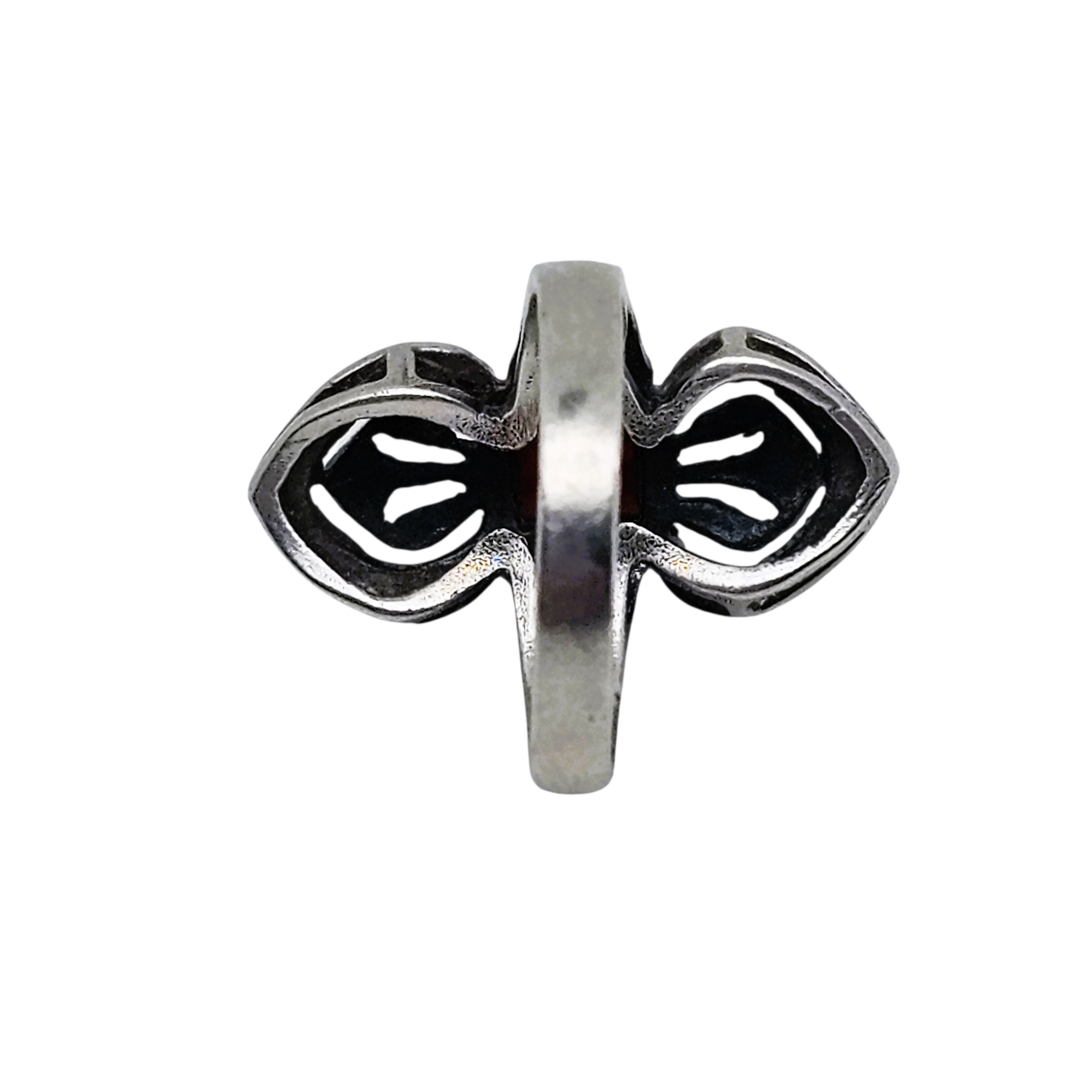 Le revers de la bague est finement ajouré, signe d’une fabrication soignée, permettant à la lumière de traverser la pierre et d’en révéler toute la richesse de couleur.