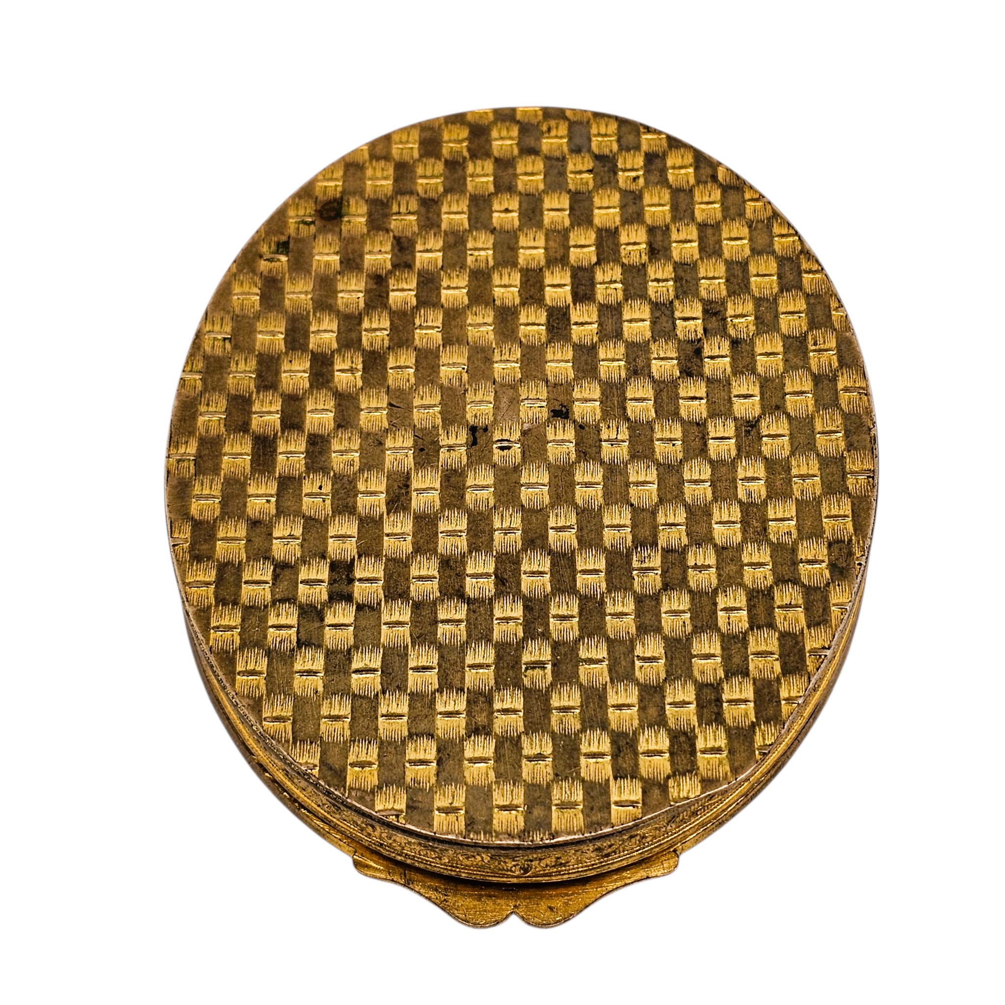 La boîte conserve une belle patine du métal doré , témoignant de son ancienneté.