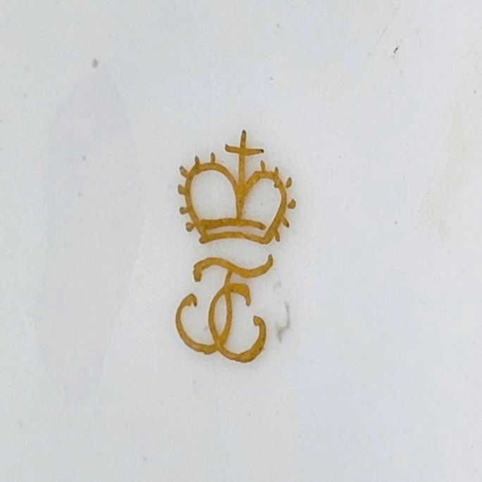 Le revers porte un monogramme couronné peint en or, attestant d’une production de qualité, probablement européenne, allemande ou française.