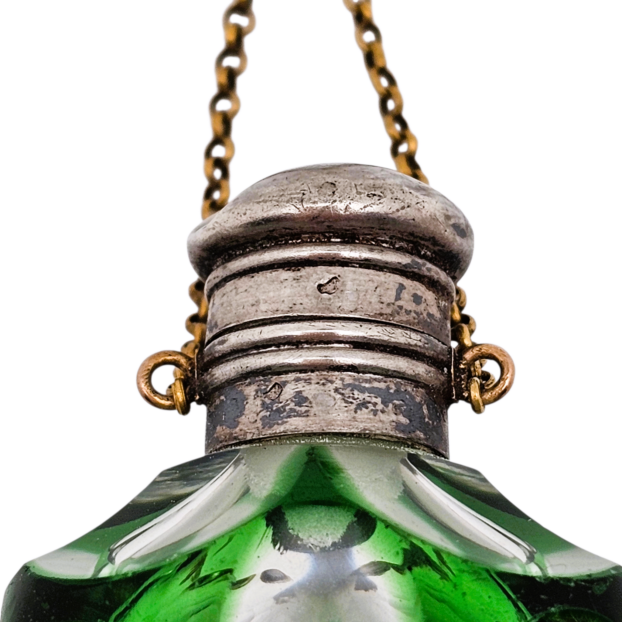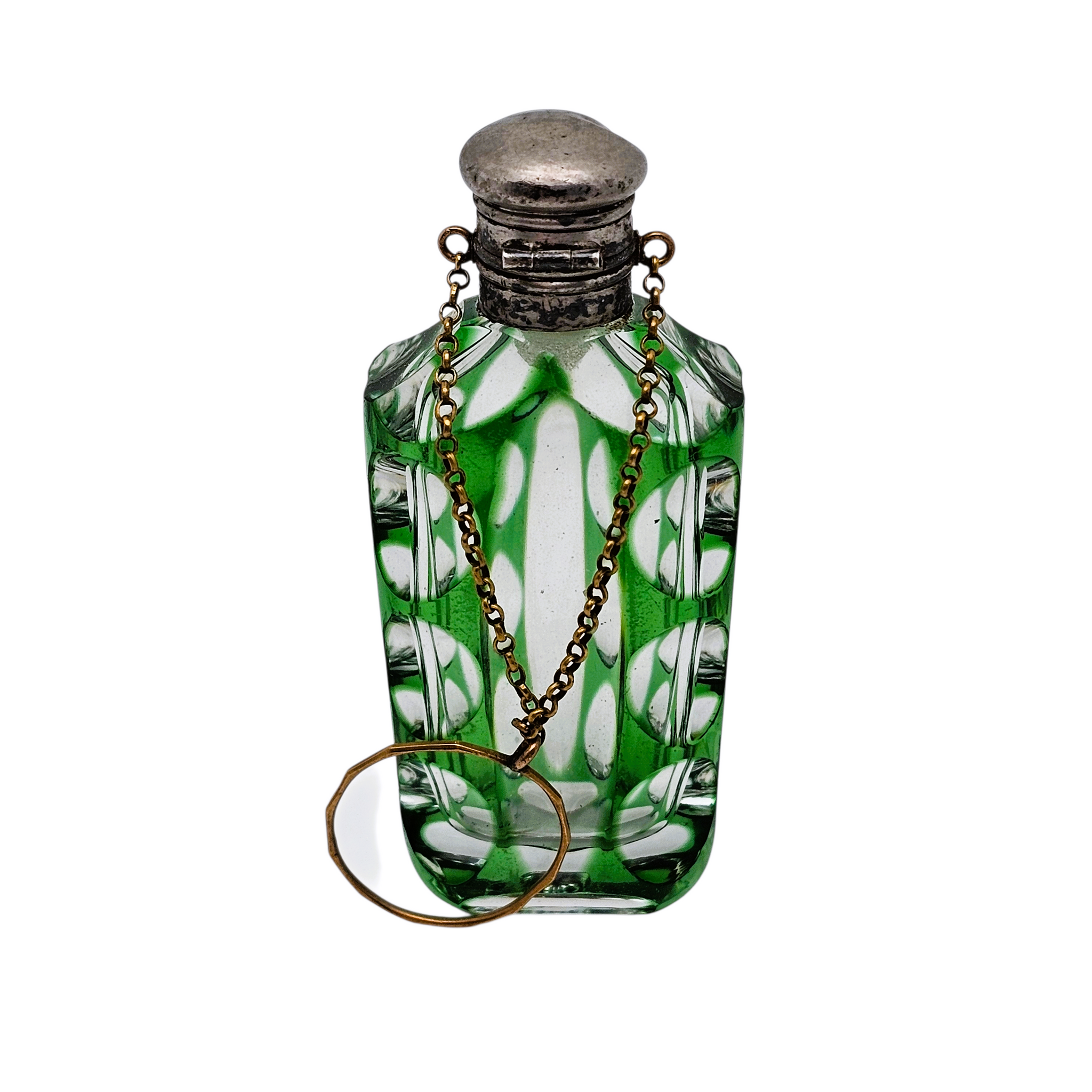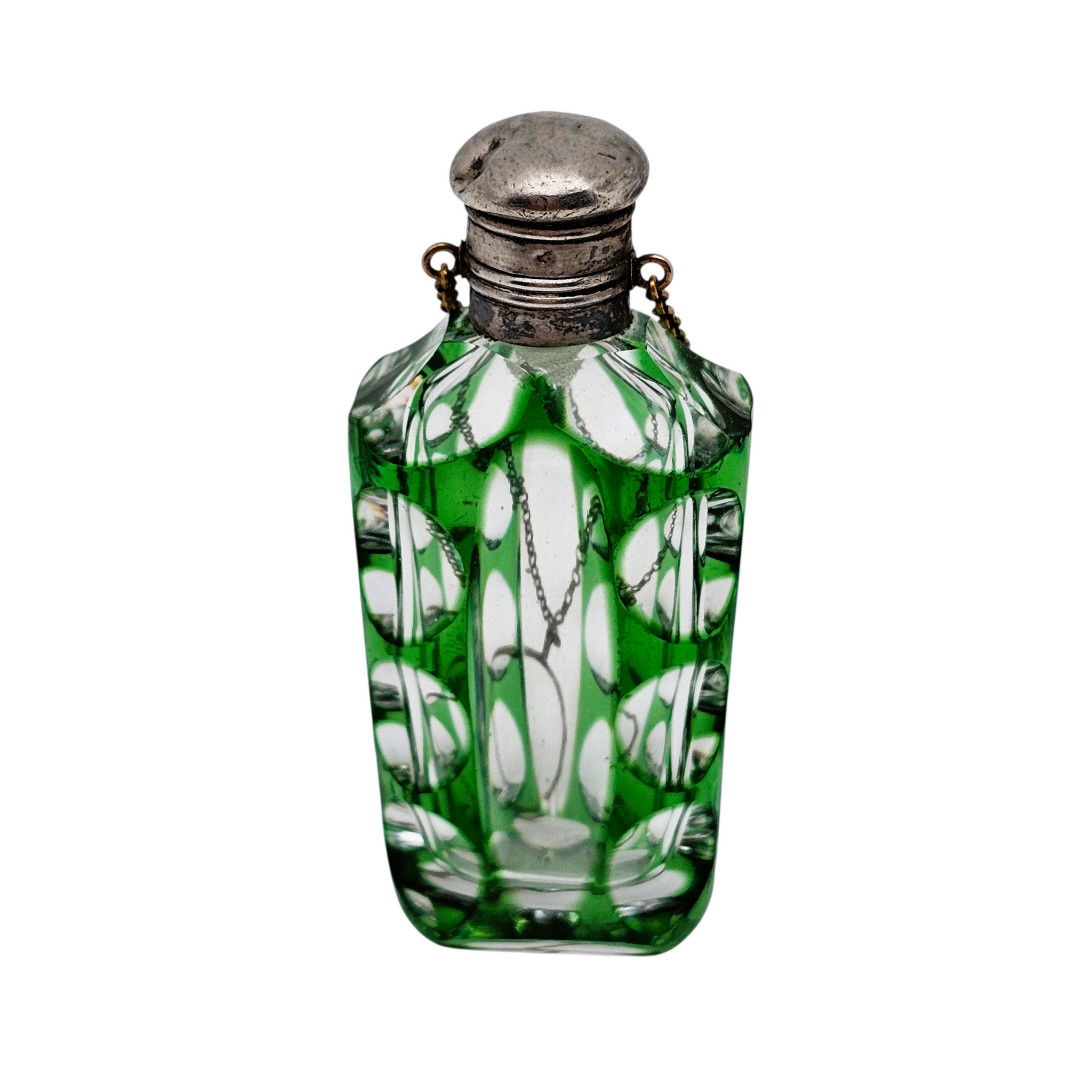Flacon en cristal overlay vert et bouchon en argent, vers 1880-1910 Le Charme des Violettes - Brocante en ligne