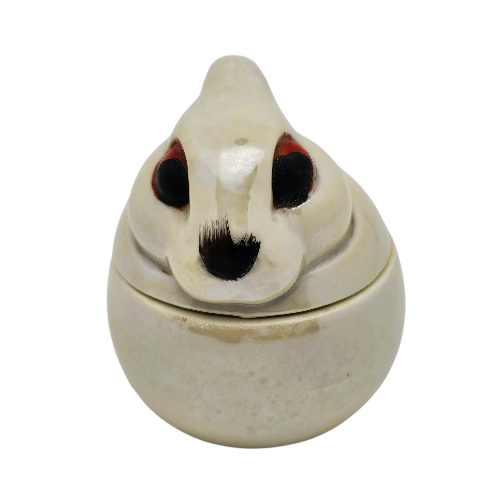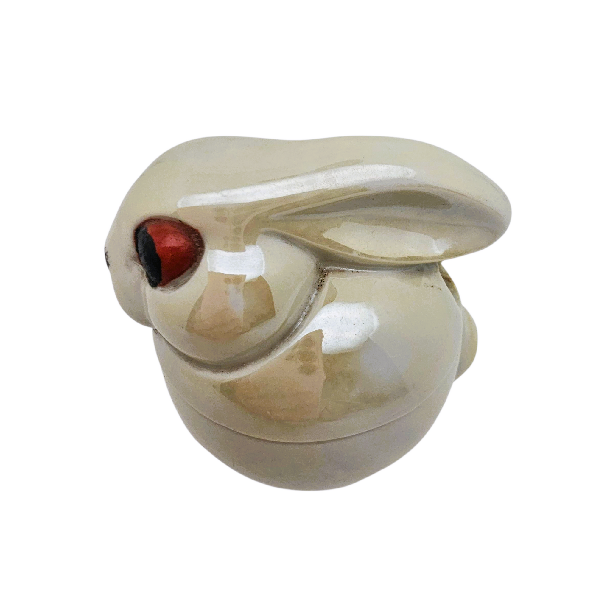 Voici un ravissant moutardier en céramique en forme de lapin, au design attendrissant et délicieusement vintage. Sa silhouette ronde et douce, son regard expressif aux yeux marron et noir et son museau délicatement peint lui confèrent une personnalité pleine de tendresse.