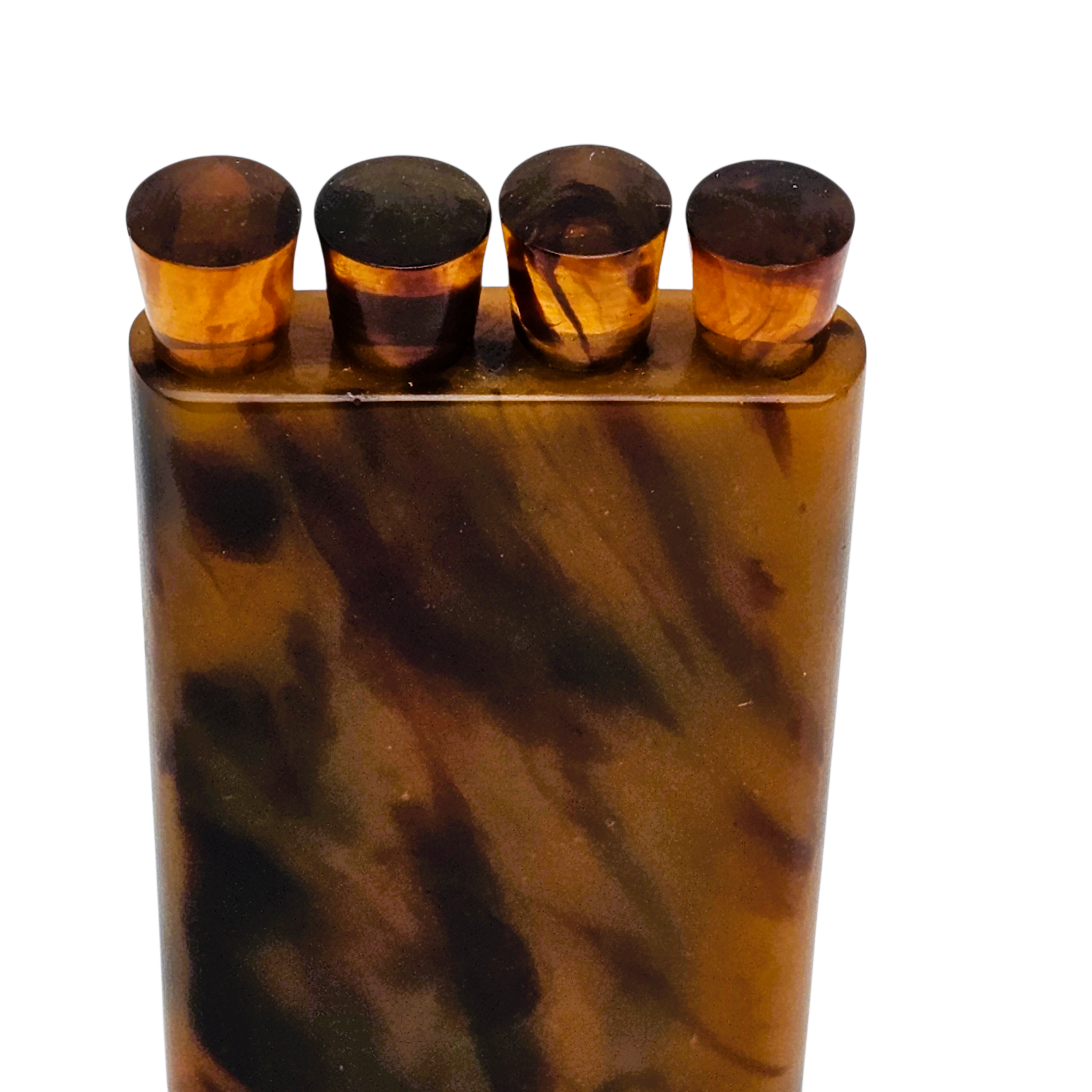 – Étui en bakélite marbrée, à quatre logements